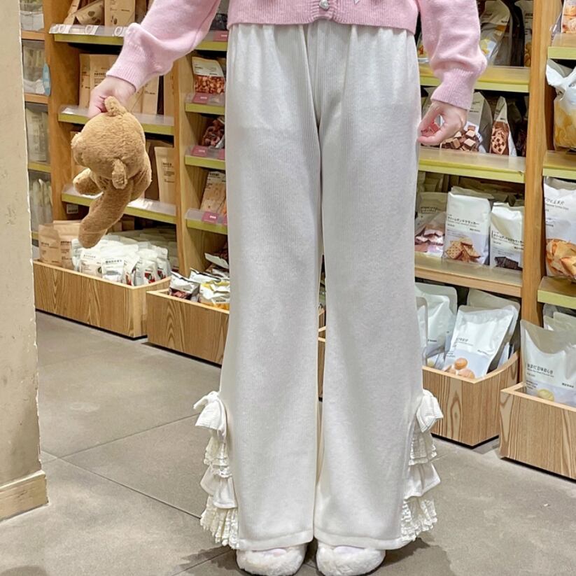 2色/チェックフリルワイドレッグパンツ ・71941