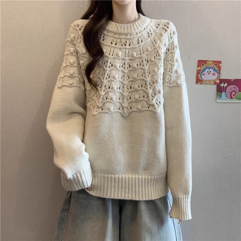 4色/Vネックフリルリボンケーブルニット ・66138