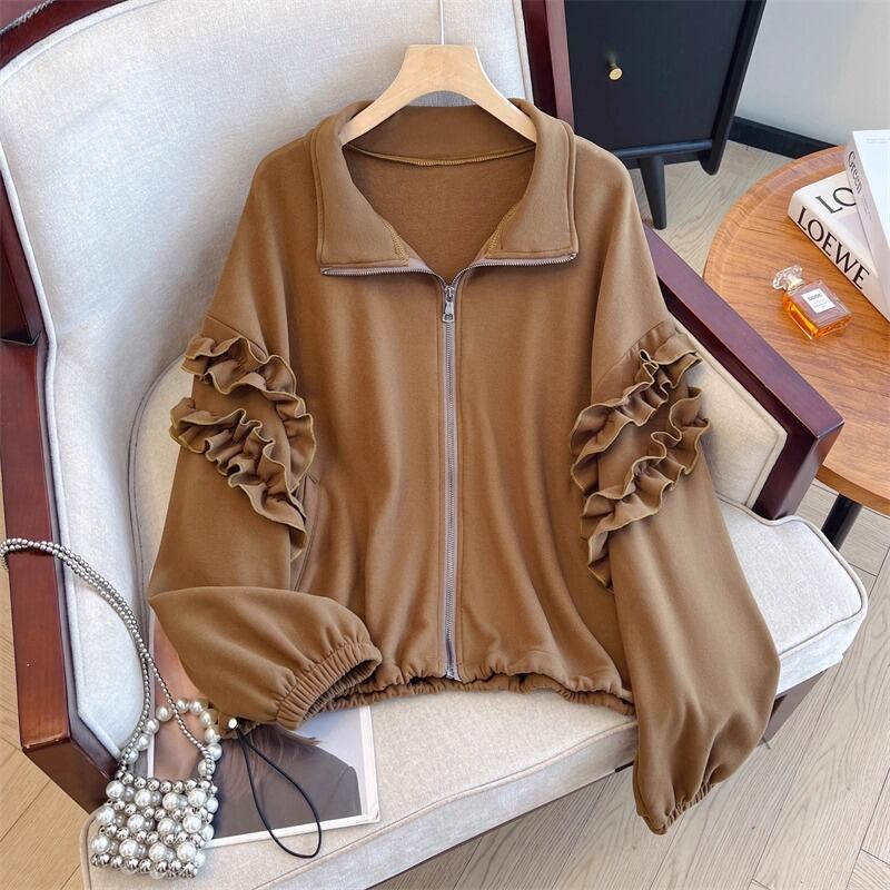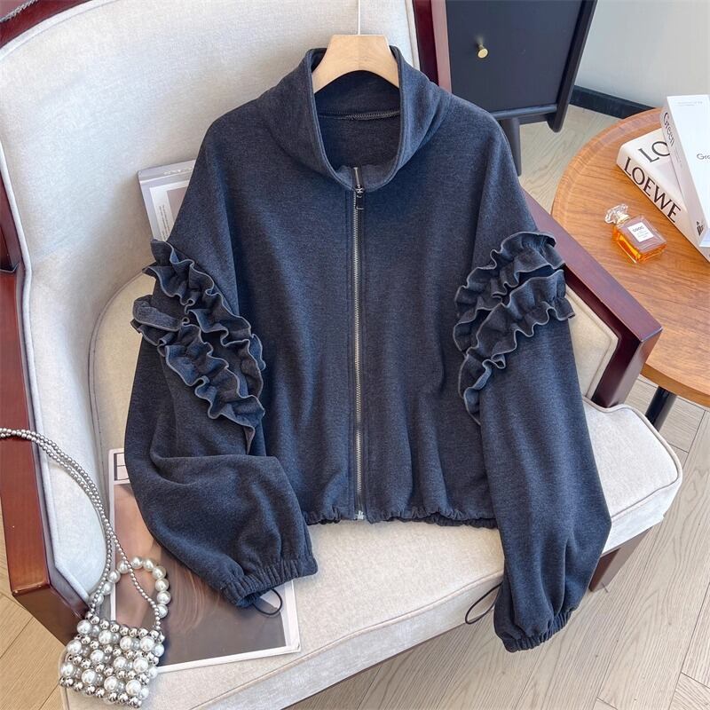 2色/シャーリングウエストフリルジップアップパーカ ・72825