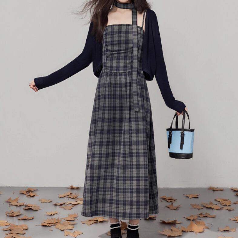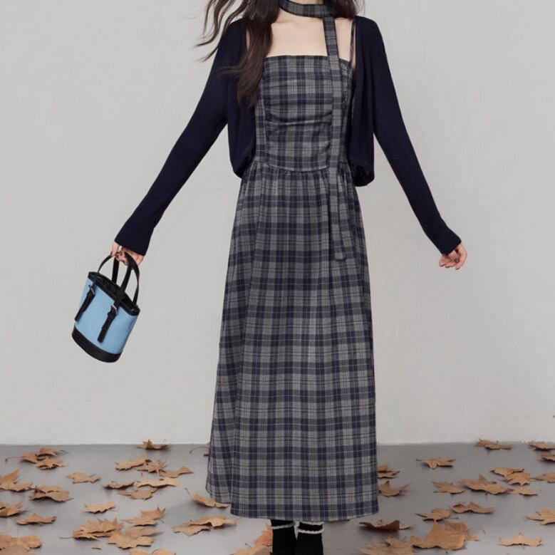 【2点セット】配色リボンヘムフリルワンピ+フリルストラップフレアジャンスカ ・50112