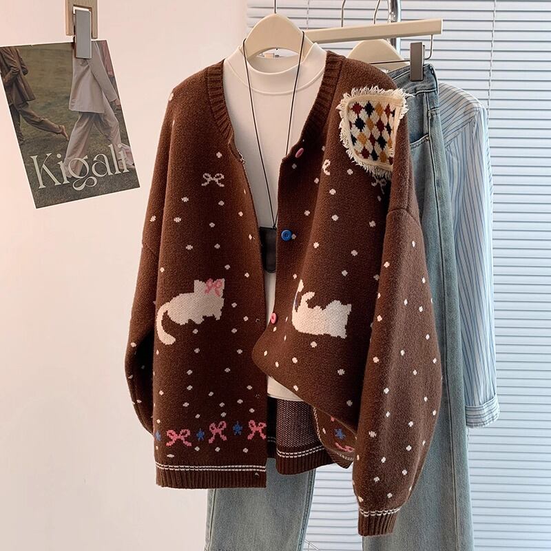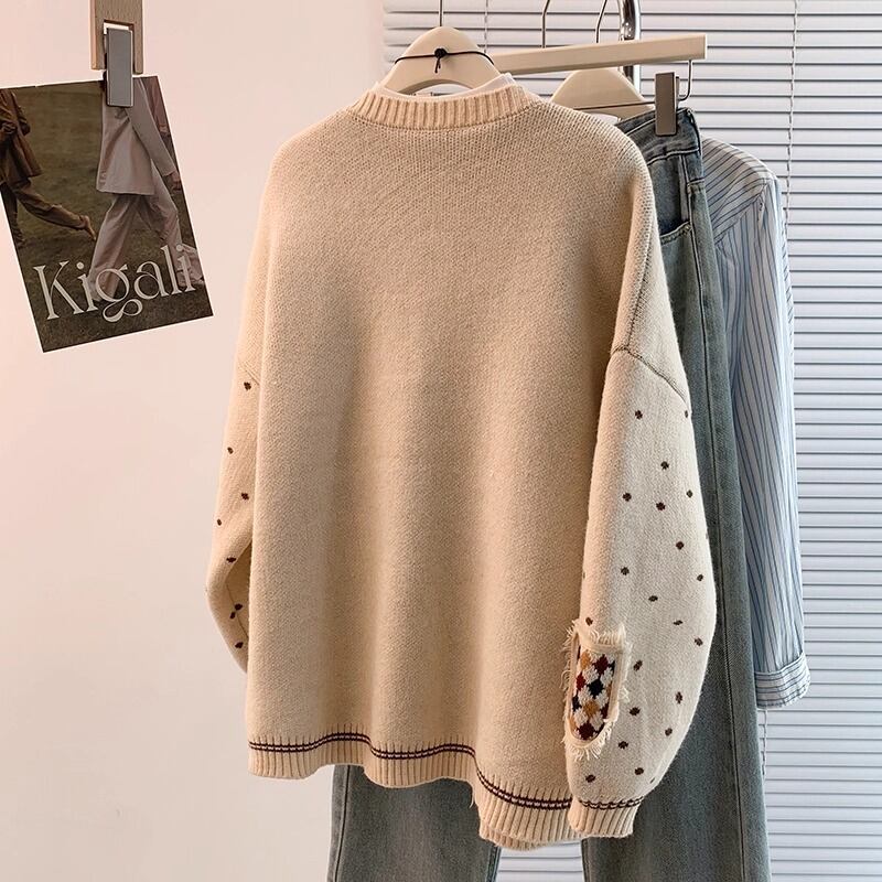 2色/ノルディック柄ポロカラーニットカーデ ・72764