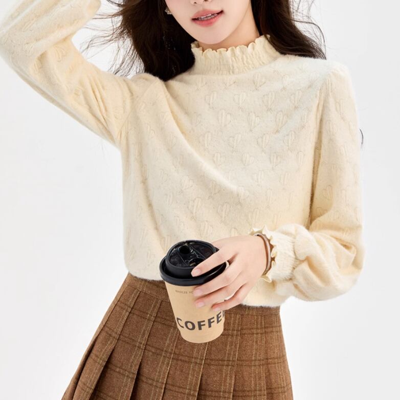 リボンステッチパフスリーブニット ・73027