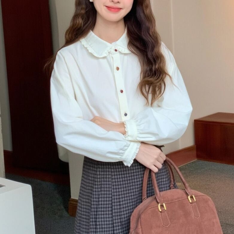 ボリュームスリーブレースラウンドカラーブラウス ・67546