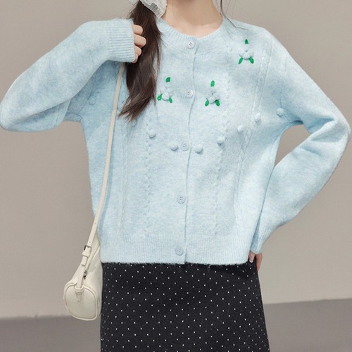 2色/ノルディック柄ポロカラーニットカーデ ・72764