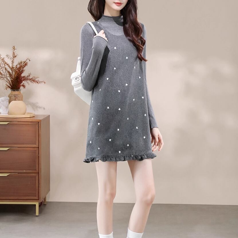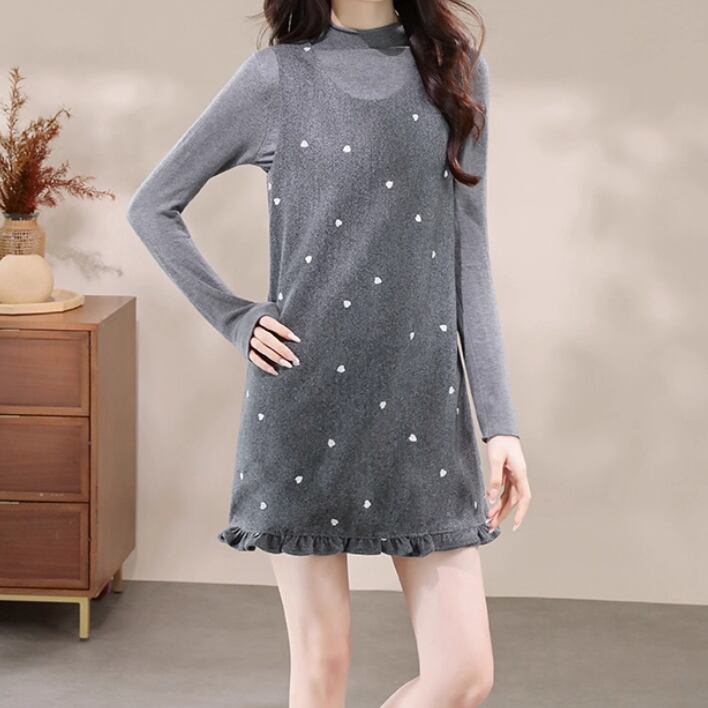 【2点セット】配色リボンヘムフリルワンピ+フリルストラップフレアジャンスカ ・50112