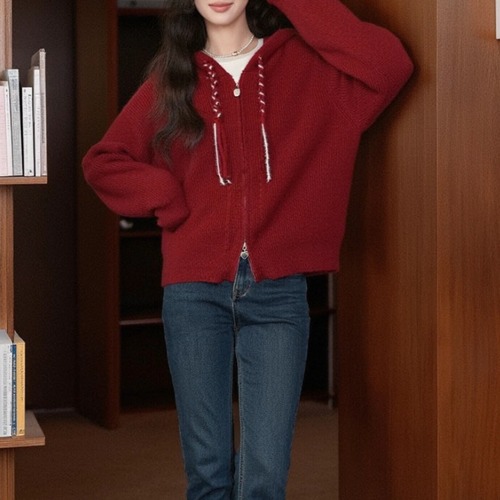 3色/リボンハニカムニットカーデ ・20306