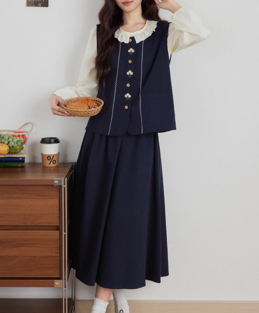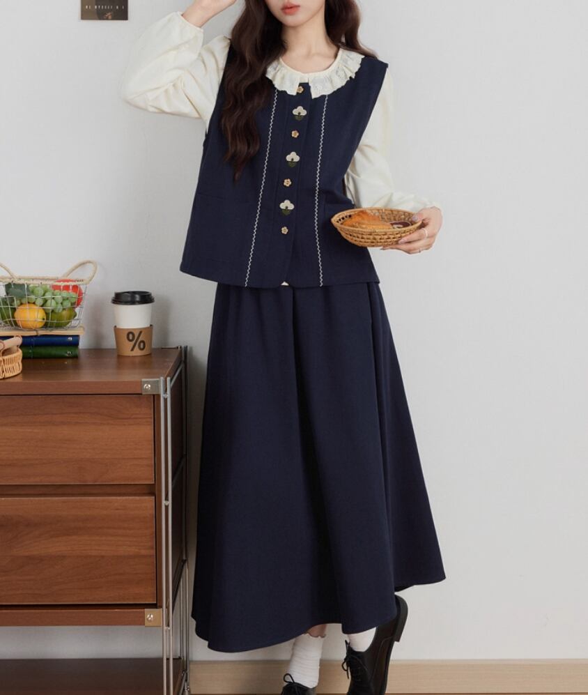 ▽Instagram「新作情報配信中」 フォローお願いいたします。 https://www.instagram.com/sucrier_closet/ ▼サイズ [ Sサイズ ] ベスト:着丈52cm バスト110cm ブラウス:着丈55cm バスト108cm 肩幅40cm 袖丈48cm スカート:着丈79cm ウエスト64-80cm [ Mサイズ ] ベスト:着丈53cm バスト114cm ブラウス:着丈56cm バスト112cm 肩幅41cm 袖丈49cm スカート:着丈80cm ウエスト68-84cm [ Lサイズ ] ベスト:着丈54cm バスト118cm ブラウス:着丈57cm バスト116cm 肩幅42cm 袖丈50cm スカート:着丈81cm ウエスト72-88cm ※1-3cm程度の誤差がある場合がございます。予めご了承ください。 ▼シーズン 春,秋 ▼同じカテゴリの商品はこちら https://www.sucrier.jp/categories/1737171 ▽お支払い方法 ・クレジットカード決済 ・キャリア決済 (docomo/au/Softbank/Y!mobile) ・後払い決済 (商品お届け後コンビニ払いなど) ▽注意点 ※こちらの商品は決済から10日-3週間前後でのお届けとなります。 ※配送日時指定等に関しては、ご指定できないことご了承くださいませ。 ※できる限り早くお届けできるように手配させて頂きます。 ※検品はしておりますが、もし届いた商品に不備がありましたら、誠実に対応させていただきます。 商品ID:SC072756