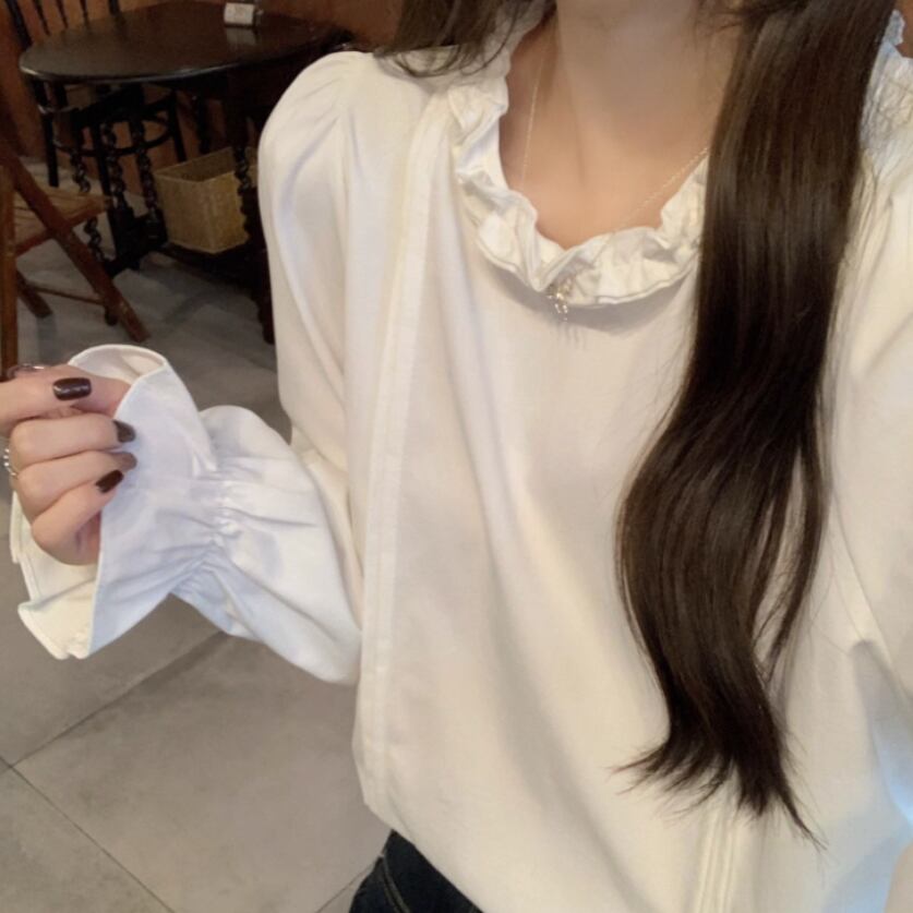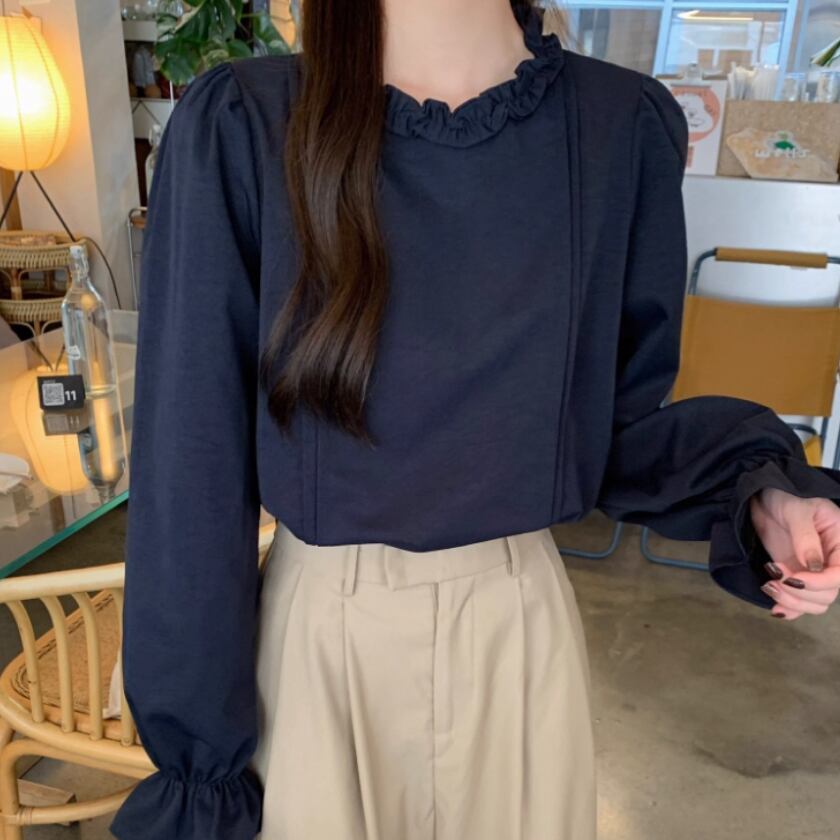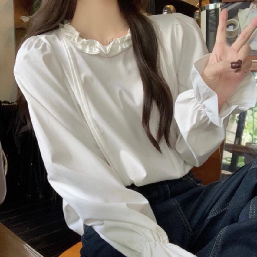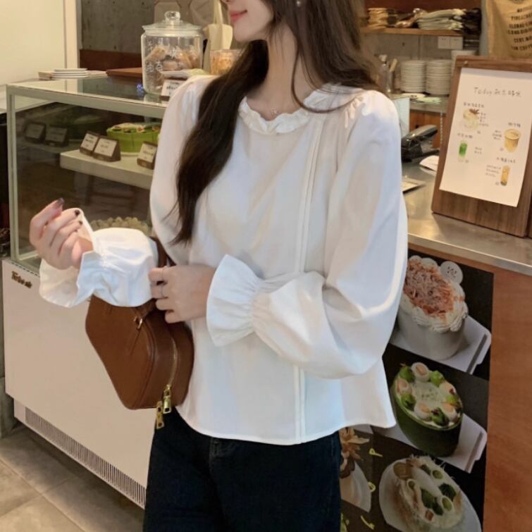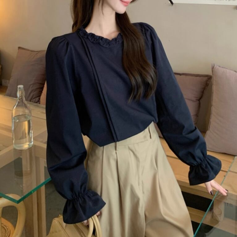 ボリュームスリーブレースラウンドカラーブラウス ・67546