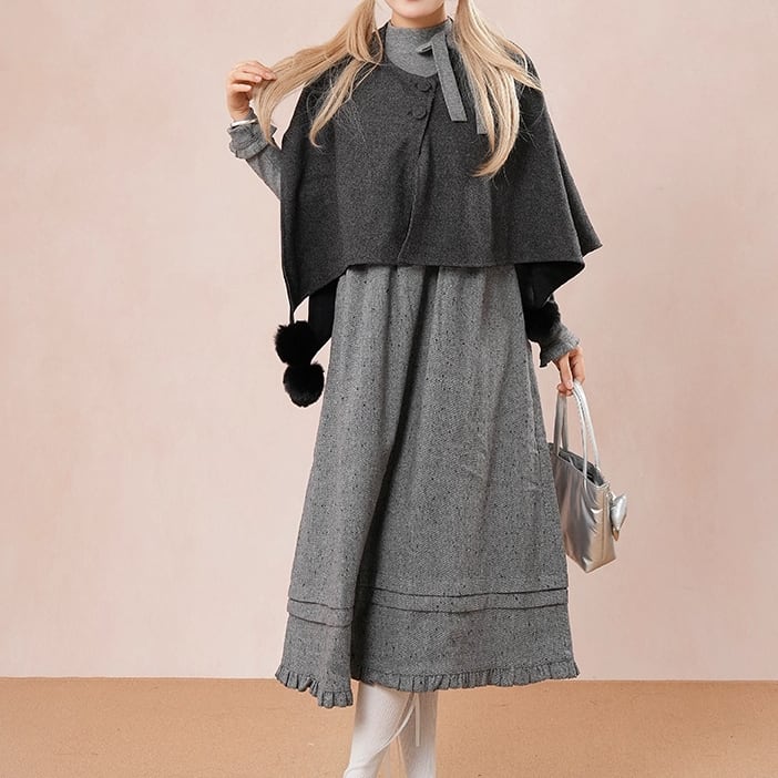 ▽Instagram「新作情報配信中」 フォローお願いいたします。 https://www.instagram.com/sucrier_closet/ ▼サイズ [ Sサイズ ] ケープ:着丈43cm ワンピ:着丈115cm バスト72cm 肩幅37cm 袖丈60cm ウエスト64cm [ Mサイズ ] ケープ:着丈44cm ワンピ:着丈116cm バスト76cm 肩幅38cm 袖丈61cm ウエスト68cm [ Lサイズ ] ケープ:着丈45cm ワンピ:着丈117cm バスト80cm 肩幅39cm 袖丈62cm ウエスト72cm [ XLサイズ ] ケープ:着丈46cm ワンピ:着丈118cm バスト84cm 肩幅40cm 袖丈63cm ウエスト76cm ※1-3cm程度の誤差がある場合がございます。予めご了承ください。 ▼シーズン 秋,冬 ▼同じカテゴリの商品はこちら https://www.sucrier.jp/categories/1737171 ▽お支払い方法 ・クレジットカード決済 ・キャリア決済 (docomo/au/Softbank/Y!mobile) ・後払い決済 (商品お届け後コンビニ払いなど) ▽注意点 ※こちらの商品は決済から10日-3週間前後でのお届けとなります。 ※配送日時指定等に関しては、ご指定できないことご了承くださいませ。 ※できる限り早くお届けできるように手配させて頂きます。 ※検品はしておりますが、もし届いた商品に不備がありましたら、誠実に対応させていただきます。 商品ID:SC073403