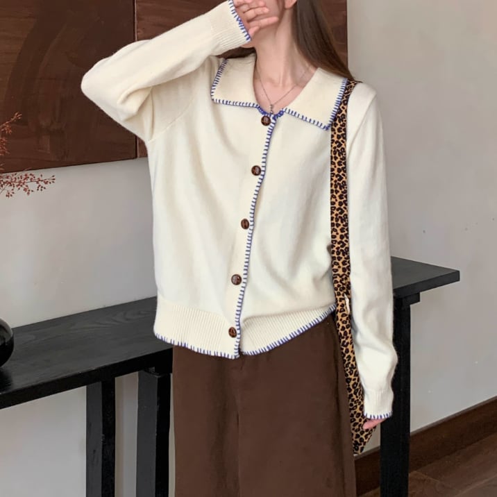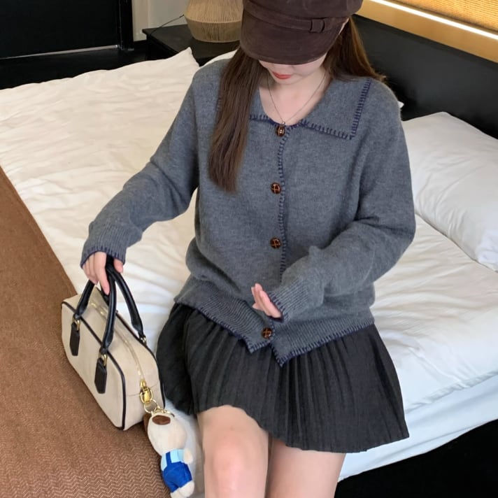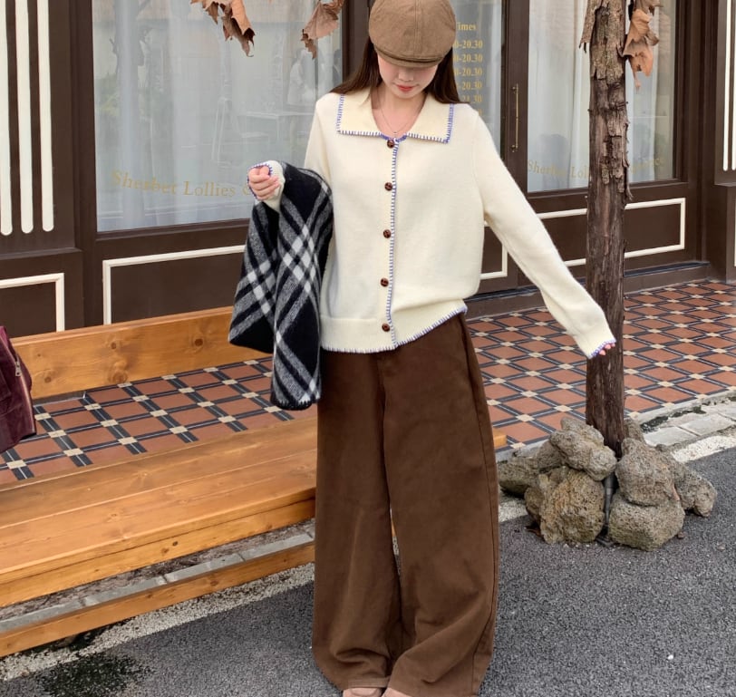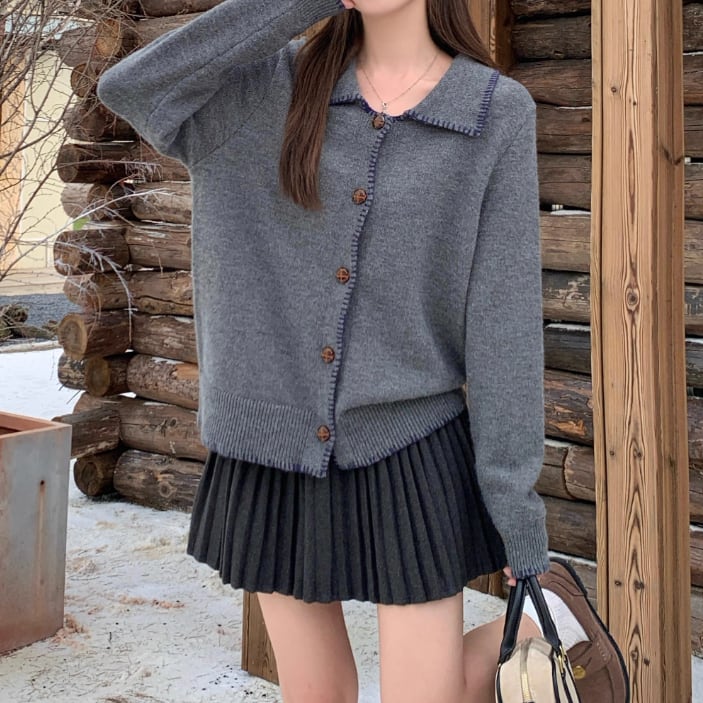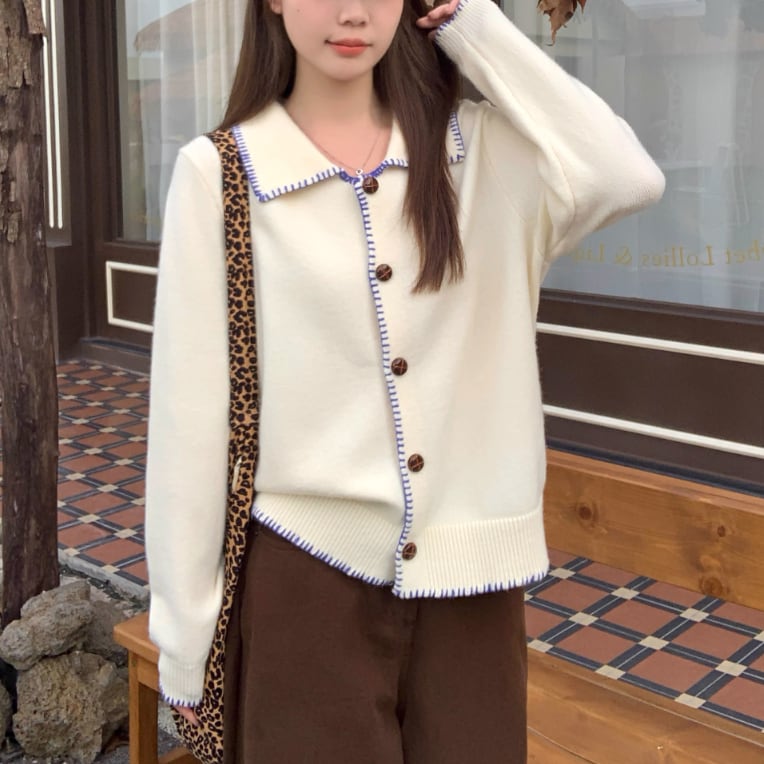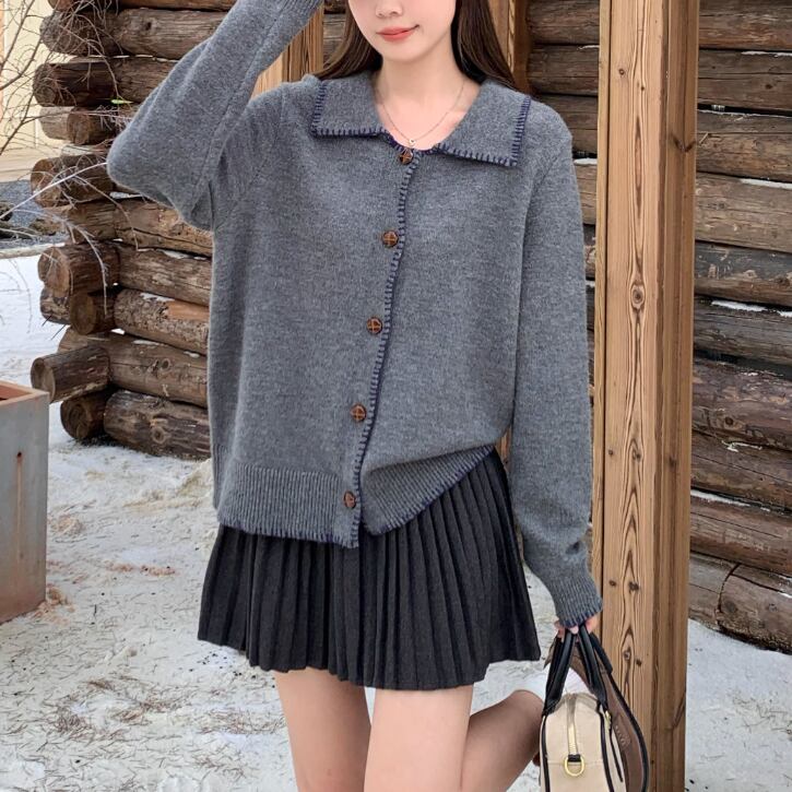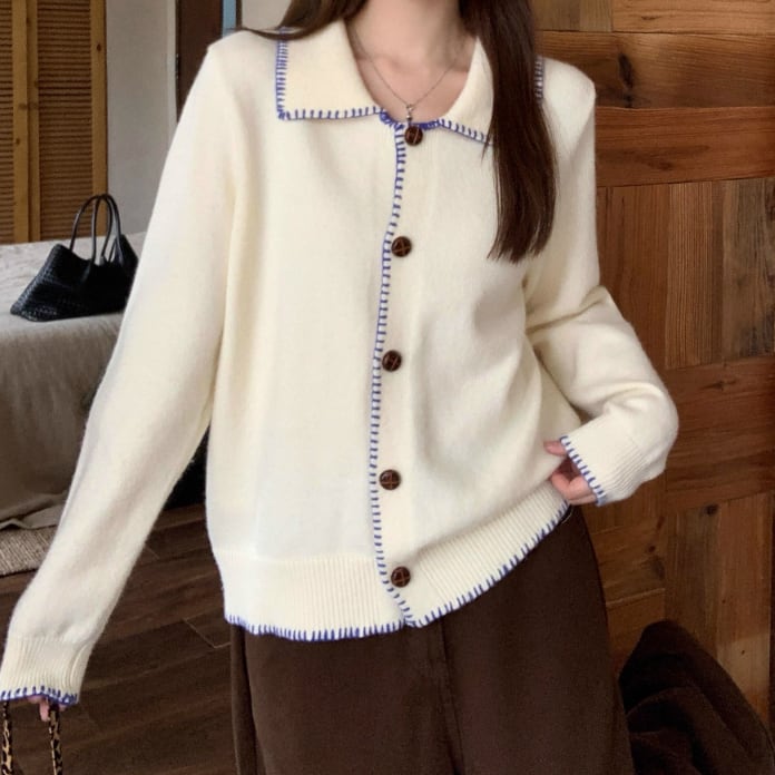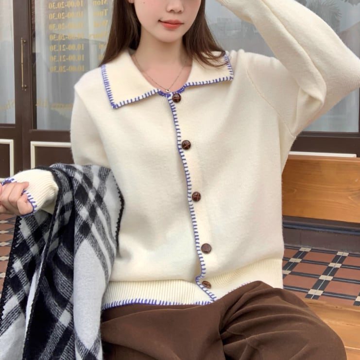 2色/2wayポロカラー横リブニットカーディガン ・73532