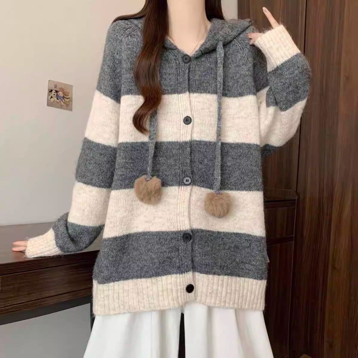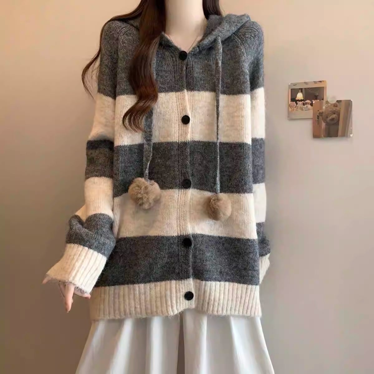 2色/2wayポロカラー横リブニットカーディガン ・73532