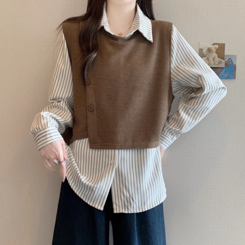 ▽Instagram「新作情報配信中」 フォローお願いいたします。 https://www.instagram.com/sucrier_closet/ ▼カラー ブルー(画像2枚目) グレー(画像3枚目) ブラウン(画像4枚目) ▼サイズ [ Lサイズ ] シャツ:着丈63cm バスト106cm ベスト:着丈45cm バスト108cm [ XLサイズ ] シャツ:着丈64cm バスト110cm ベスト:着丈46cm バスト112cm [ 2XLサイズ ] シャツ:着丈65cm バスト114cm ベスト:着丈47cm バスト116cm [ 3XLサイズ ] シャツ:着丈66cm バスト118cm ベスト:着丈48cm バスト120cm [ 4XLサイズ ] シャツ:着丈67cm バスト122cm ベスト:着丈49cm バスト124cm ※1-3cm程度の誤差がある場合がございます。予めご了承ください。 ▼シーズン 秋冬 ▼同じカテゴリの商品はこちら https://www.sucrier.jp/categories/1737171 ▽お支払い方法 ・クレジットカード決済 ・キャリア決済 (docomo/au/Softbank/Y!mobile) ・後払い決済 (商品お届け後コンビニ払いなど) ▽注意点 ※こちらの商品は決済から10日-3週間前後でのお届けとなります。 ※配送日時指定等に関しては、ご指定できないことご了承くださいませ。 ※できる限り早くお届けできるように手配させて頂きます。 ※検品はしておりますが、もし届いた商品に不備がありましたら、誠実に対応させていただきます。 商品ID:SC073340