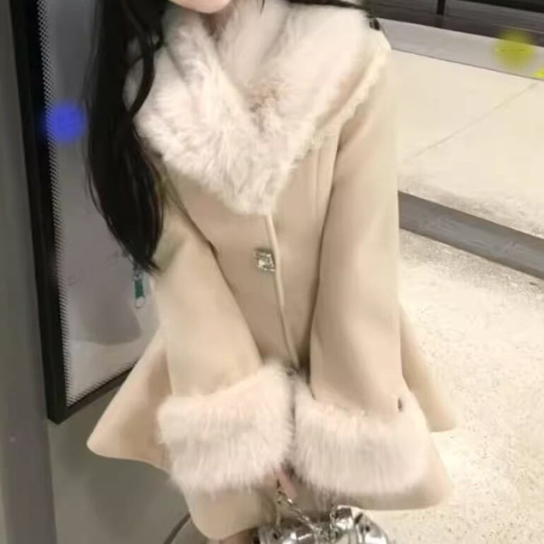ファーフード付きウールタッチジャケット ・73572