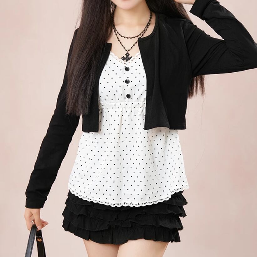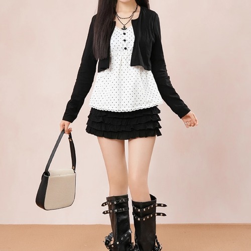 【2点セット】ショートジャケット+ファートリムティアードリボンキャミワンピ ・63097
