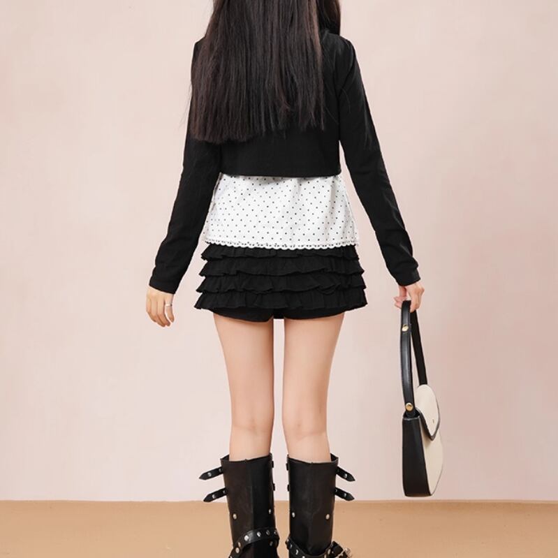 【2点セット】レイヤード風ツイードジャケット+プリーツスカート ・65693