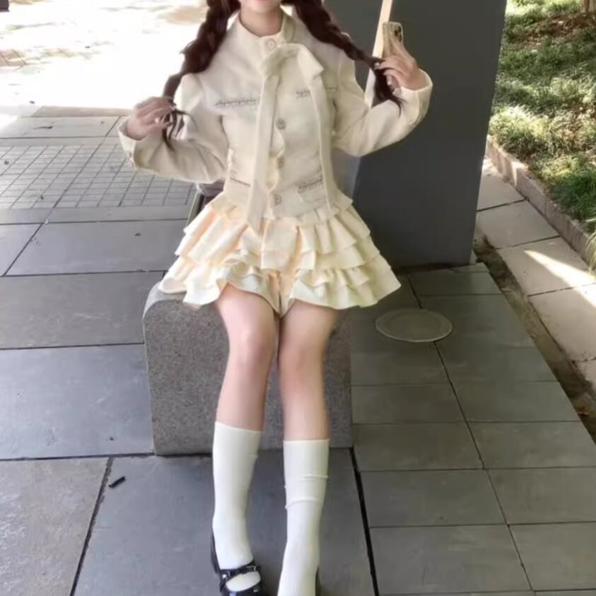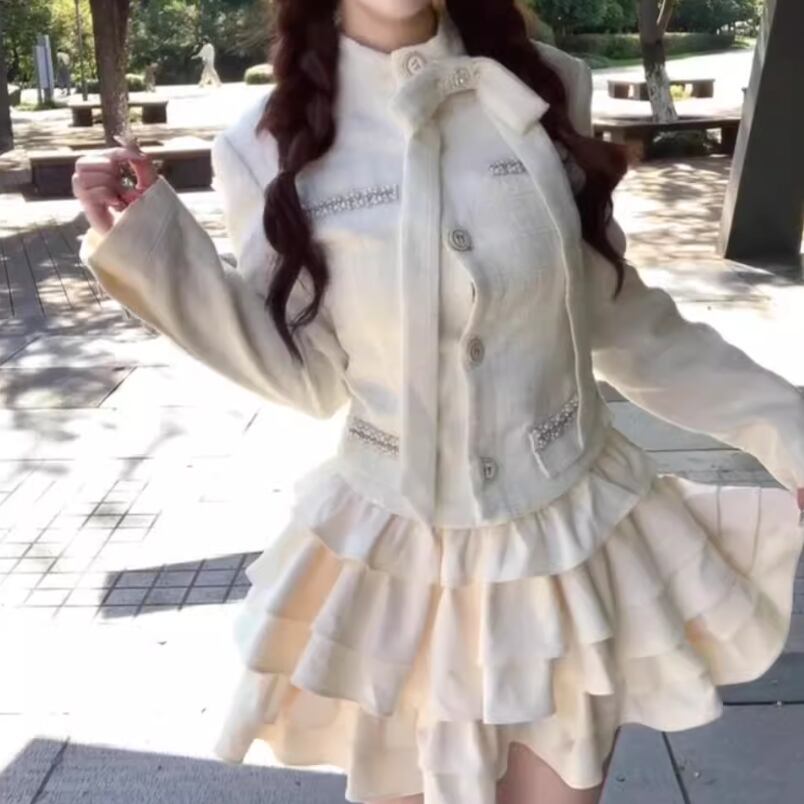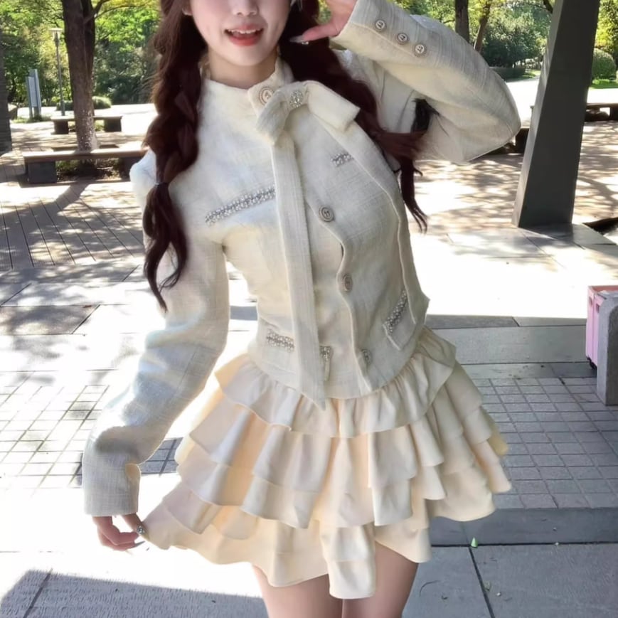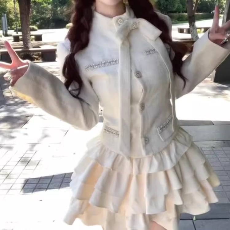 ▽Instagram「新作情報配信中」 フォローお願いいたします。 https://www.instagram.com/sucrier_closet/ ▼カラー オフホワイト ▼サイズ [ Sサイズ ] ジャケット:着丈51cm バスト80cm 肩幅38cm 袖丈60cm ウエスト64cm スカート:着丈35cm ウエスト64cm [ Mサイズ ] ジャケット:着丈52cm バスト84cm 肩幅39cm 袖丈61cm ウエスト68cm スカート:着丈36cm ウエスト68cm [ Lサイズ ] ジャケット:着丈53cm バスト88cm 肩幅40cm 袖丈62cm ウエスト72cm スカート:着丈37cm ウエスト72cm [ XLサイズ ] ジャケット:着丈54cm バスト92cm 肩幅41cm 袖丈63cm ウエスト76cm スカート:着丈38cm ウエスト76cm ※1-3cm程度の誤差がある場合がございます。予めご了承ください。 ▼シーズン 秋冬 ▼同じカテゴリの商品はこちら https://www.sucrier.jp/categories/1737171 ▽お支払い方法 ・クレジットカード決済 ・キャリア決済 (docomo/au/Softbank/Y!mobile) ・後払い決済 (商品お届け後コンビニ払いなど) ▽注意点 ※こちらの商品は決済から10日-3週間前後でのお届けとなります。 ※配送日時指定等に関しては、ご指定できないことご了承くださいませ。 ※できる限り早くお届けできるように手配させて頂きます。 ※検品はしておりますが、もし届いた商品に不備がありましたら、誠実に対応させていただきます。 商品ID:SC073200