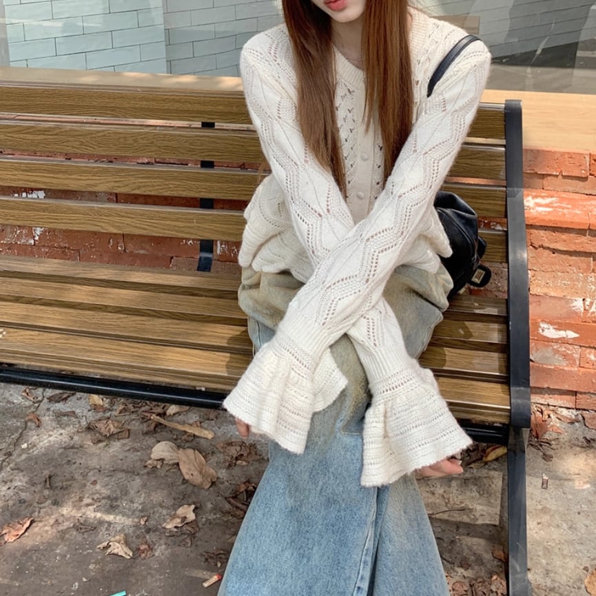 2色/2wayポロカラー横リブニットカーディガン ・73532
