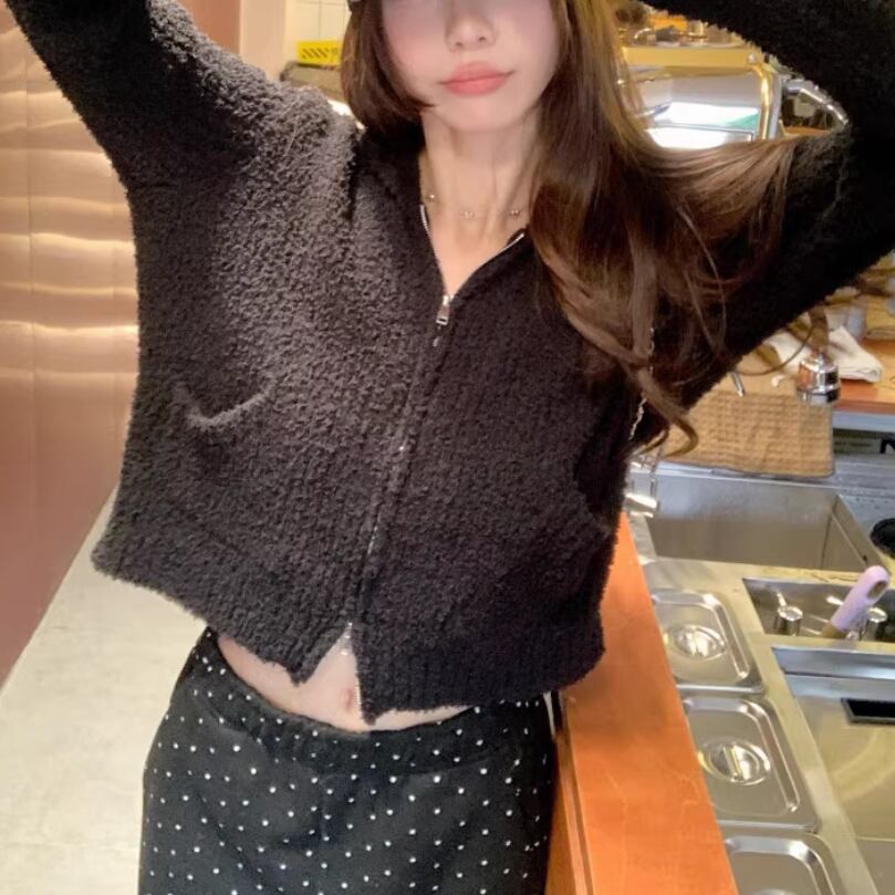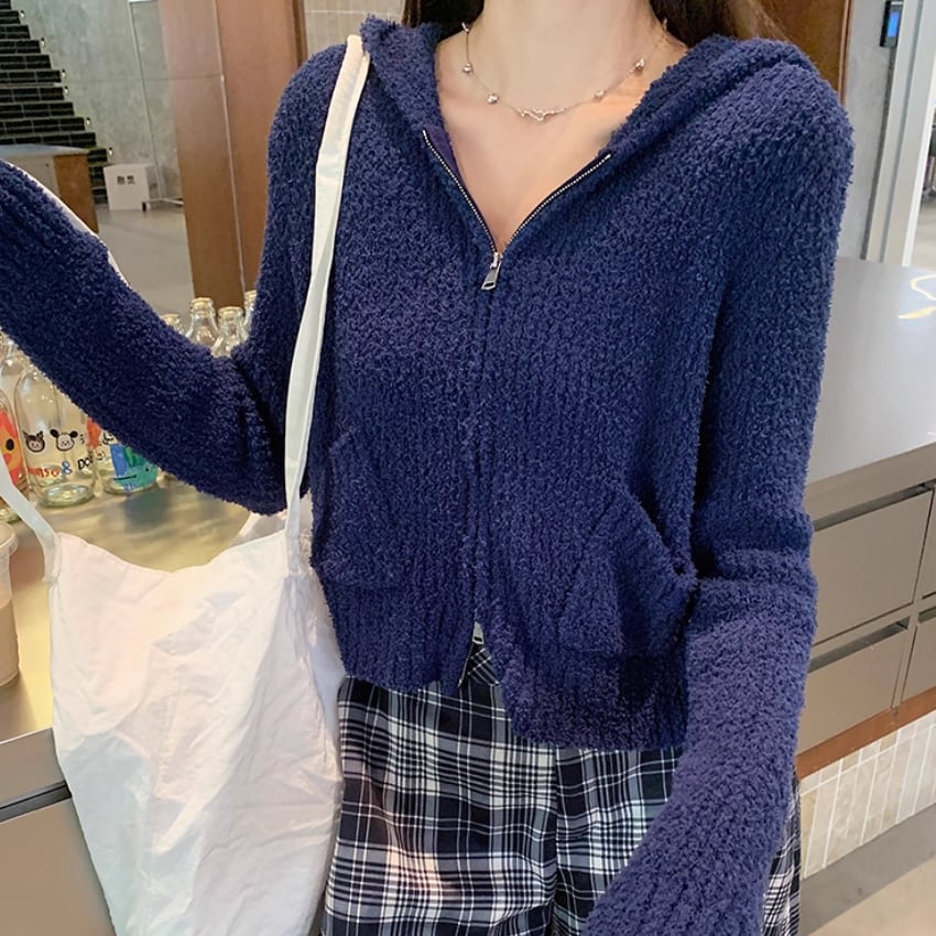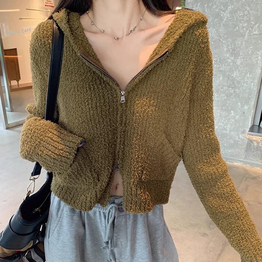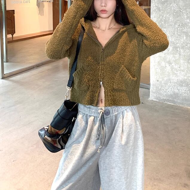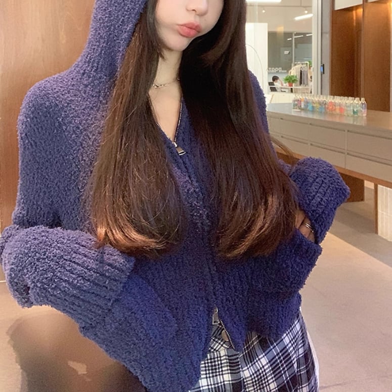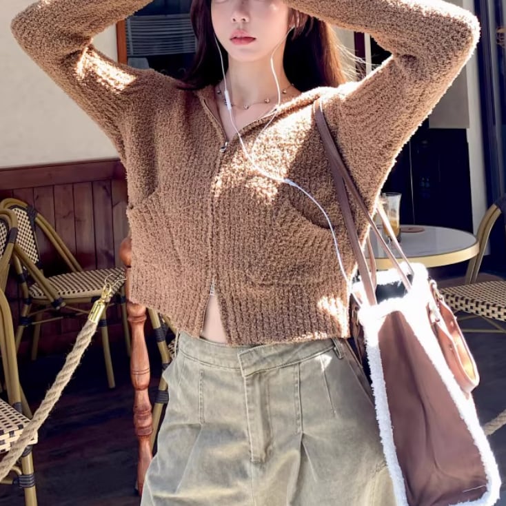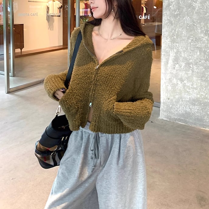 2色/2wayポロカラー横リブニットカーディガン ・73532
