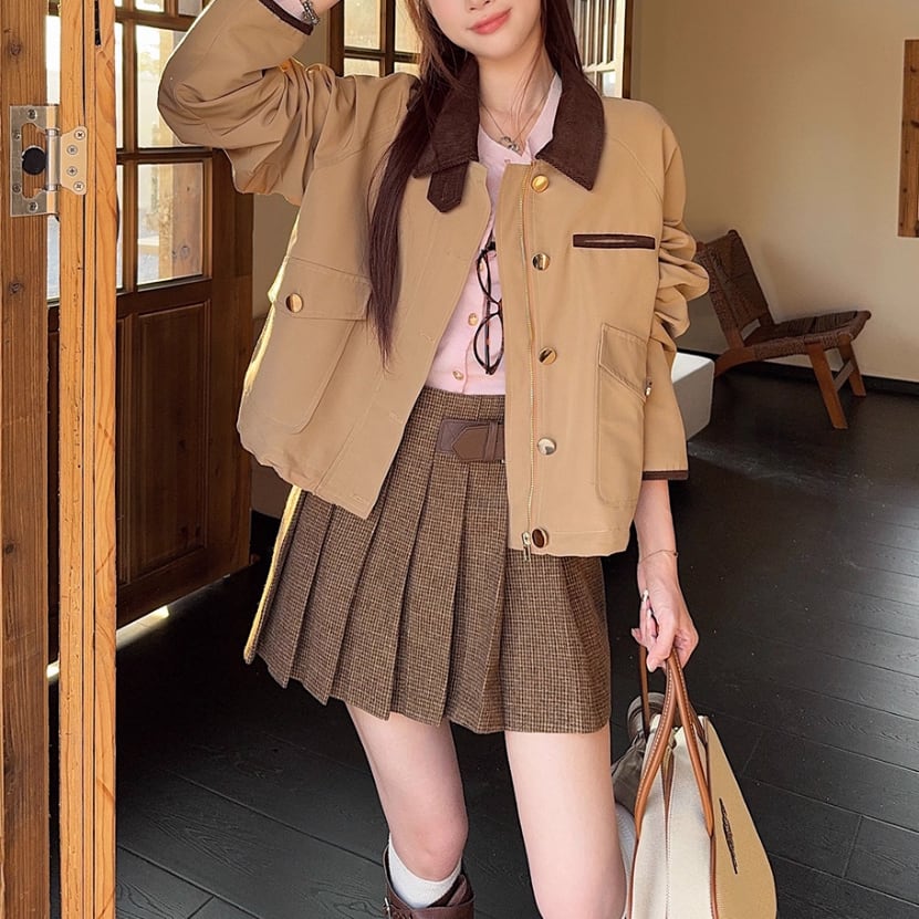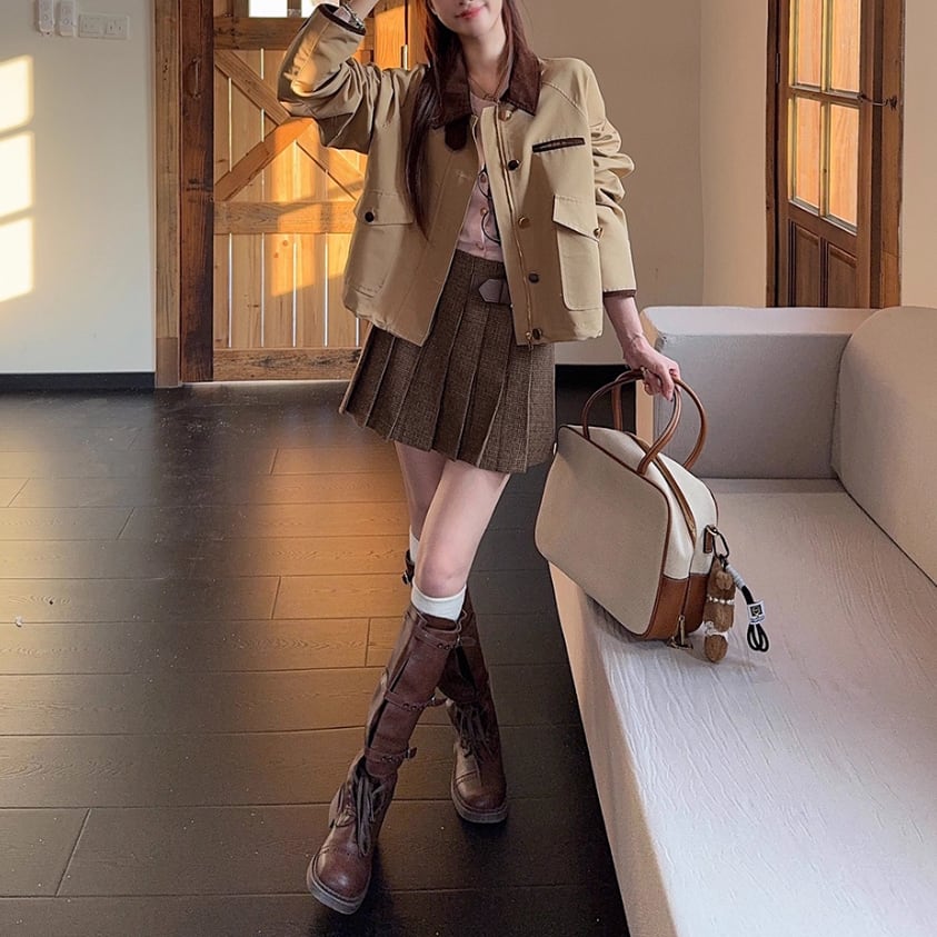 【2点セット】レイヤード風ツイードジャケット+プリーツスカート ・65693
