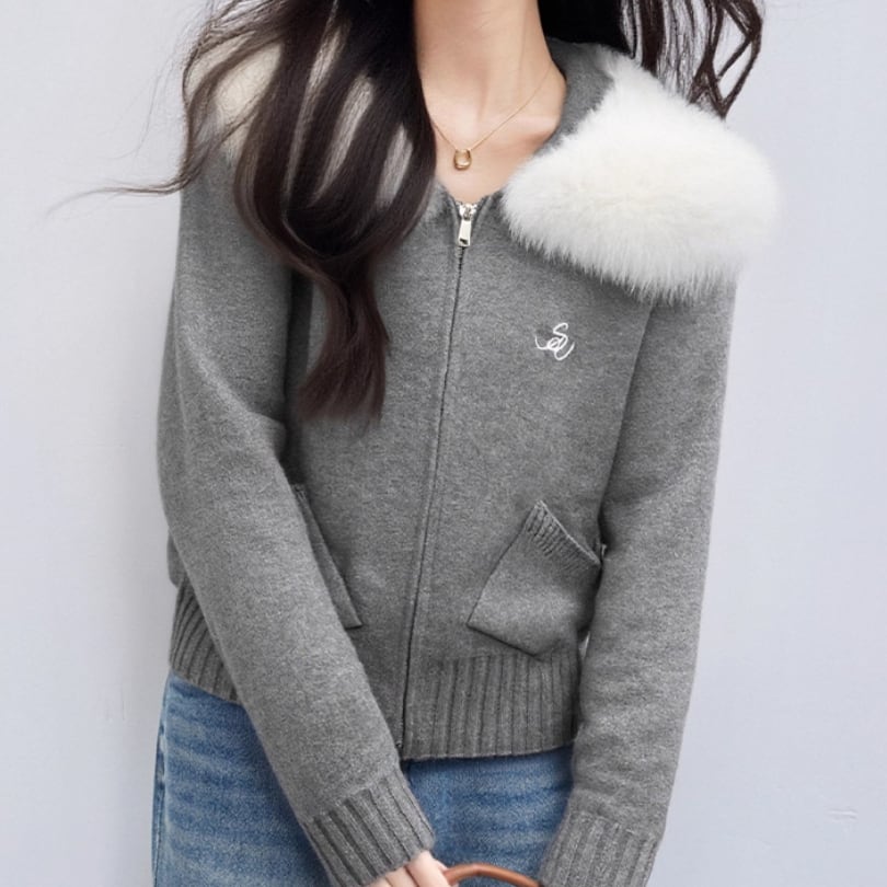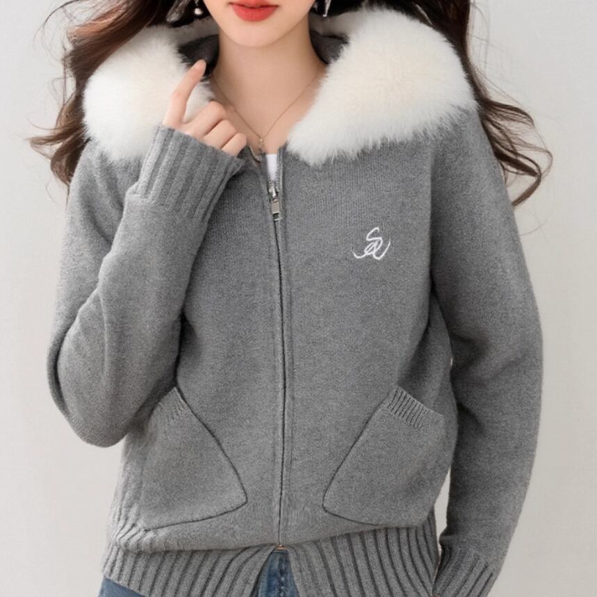 2色/2wayポロカラー横リブニットカーディガン ・73532