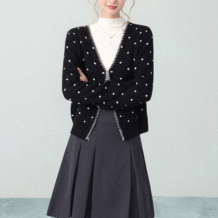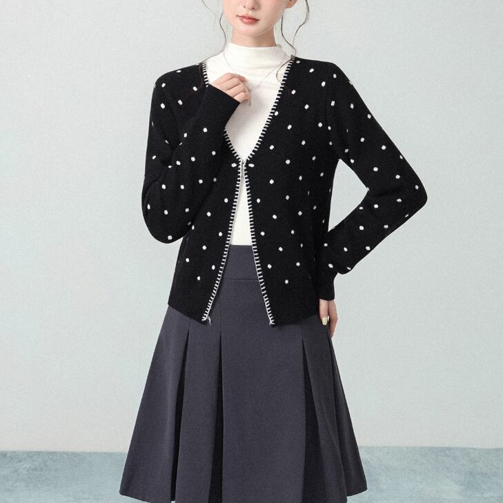 2色/2wayポロカラー横リブニットカーディガン ・73532