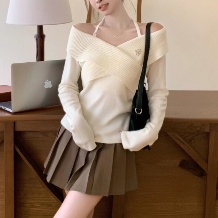 2色/ノルディック柄オフショルニットトップス ・73534