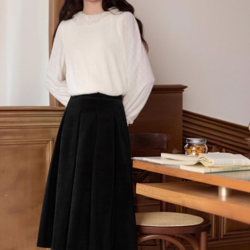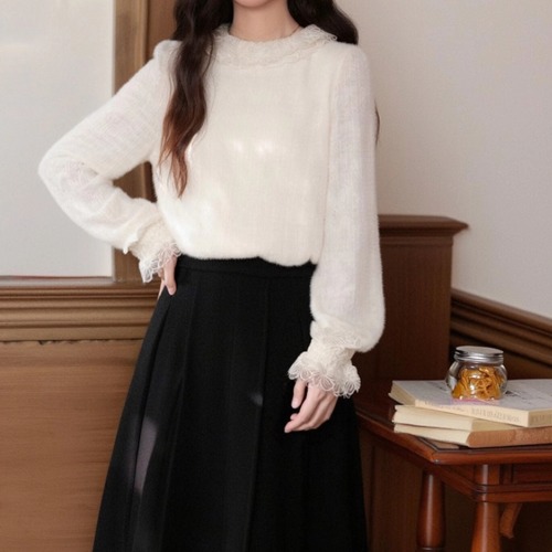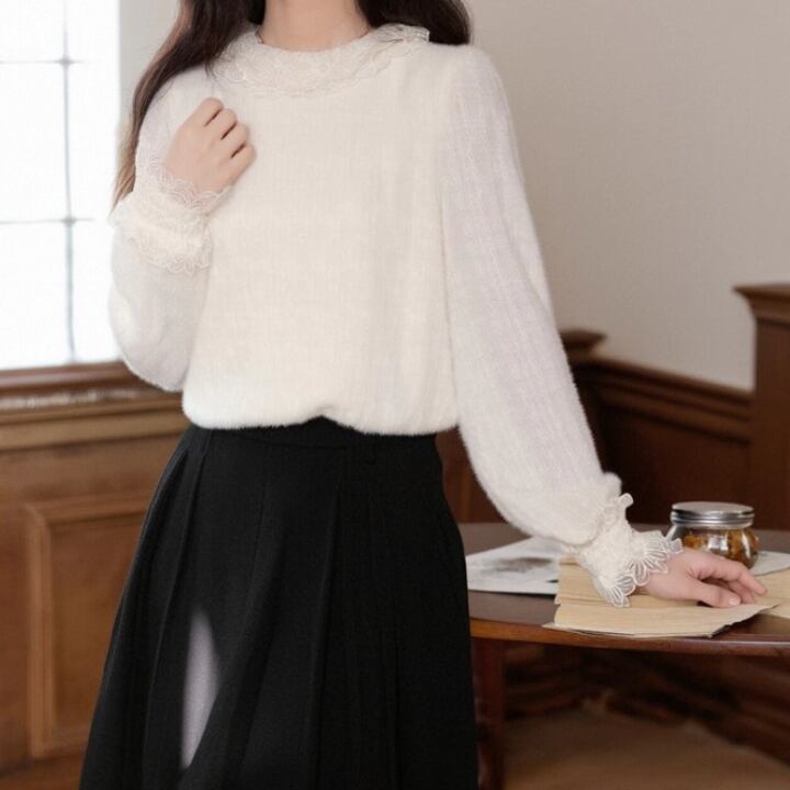 ボリュームスリーブレースラウンドカラーブラウス ・67546