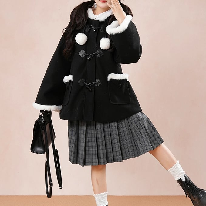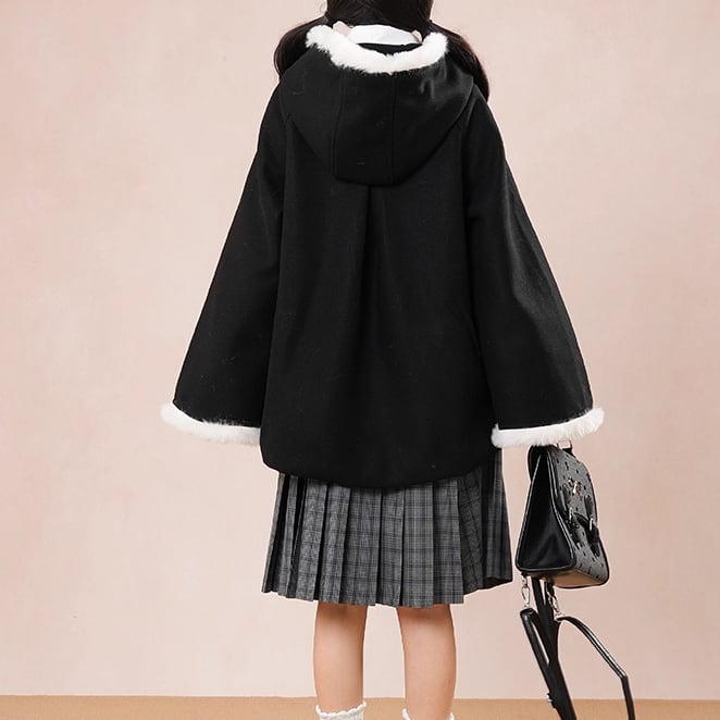 ファーフード付きウールタッチジャケット ・73572