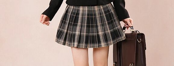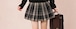 【2点セット】2色/ハイネックトップス+サイドベルトチェックジャンスカ ・72066