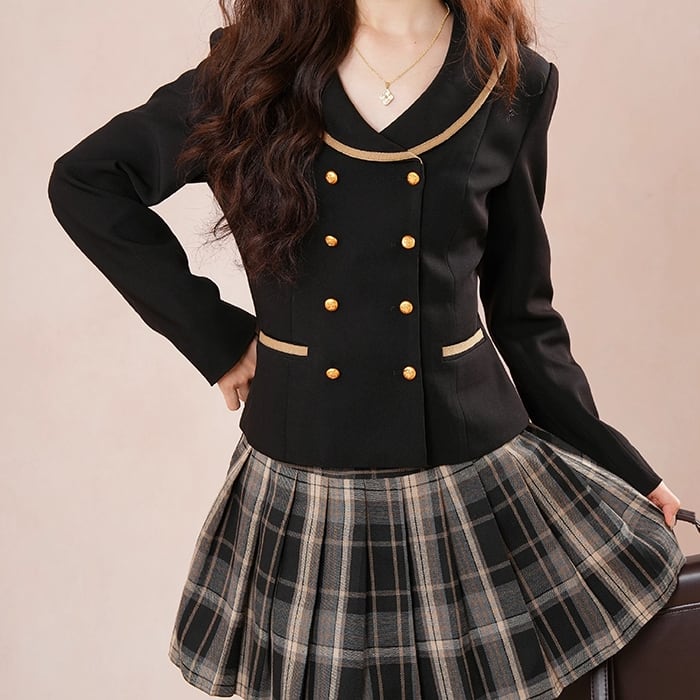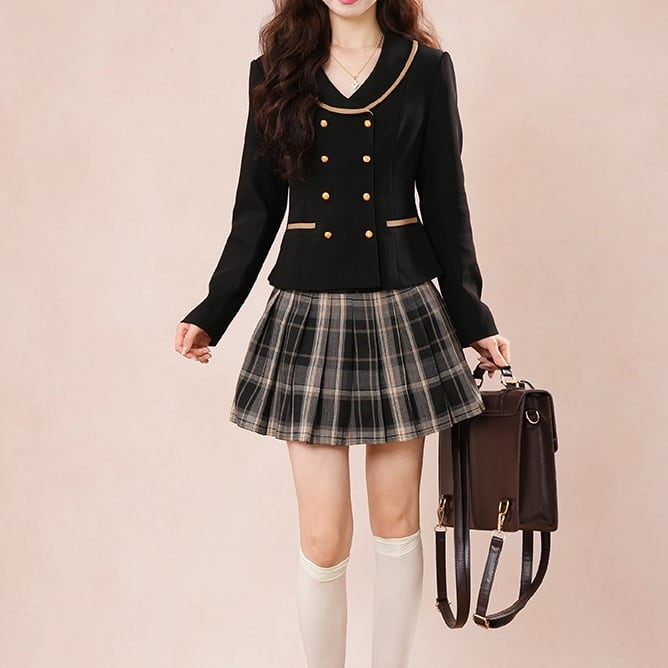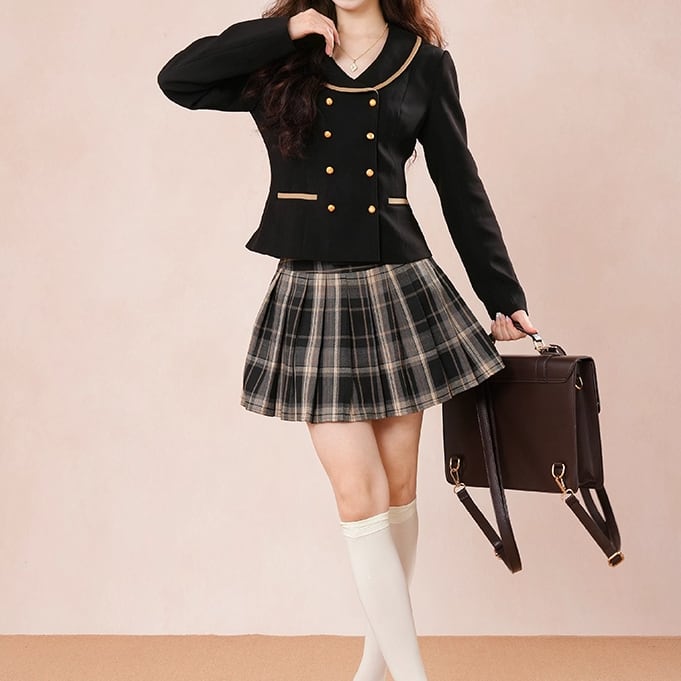 【2点セット】レイヤード風ツイードジャケット+プリーツスカート ・65693
