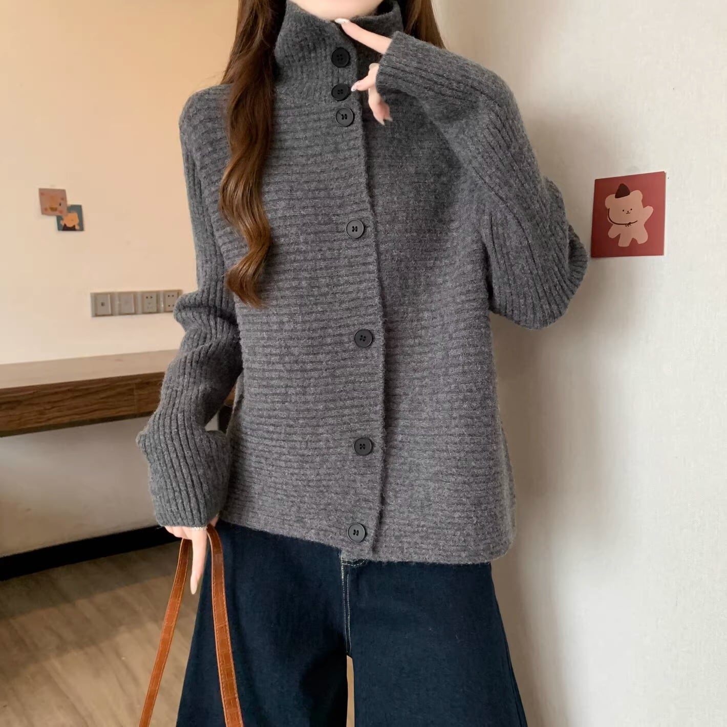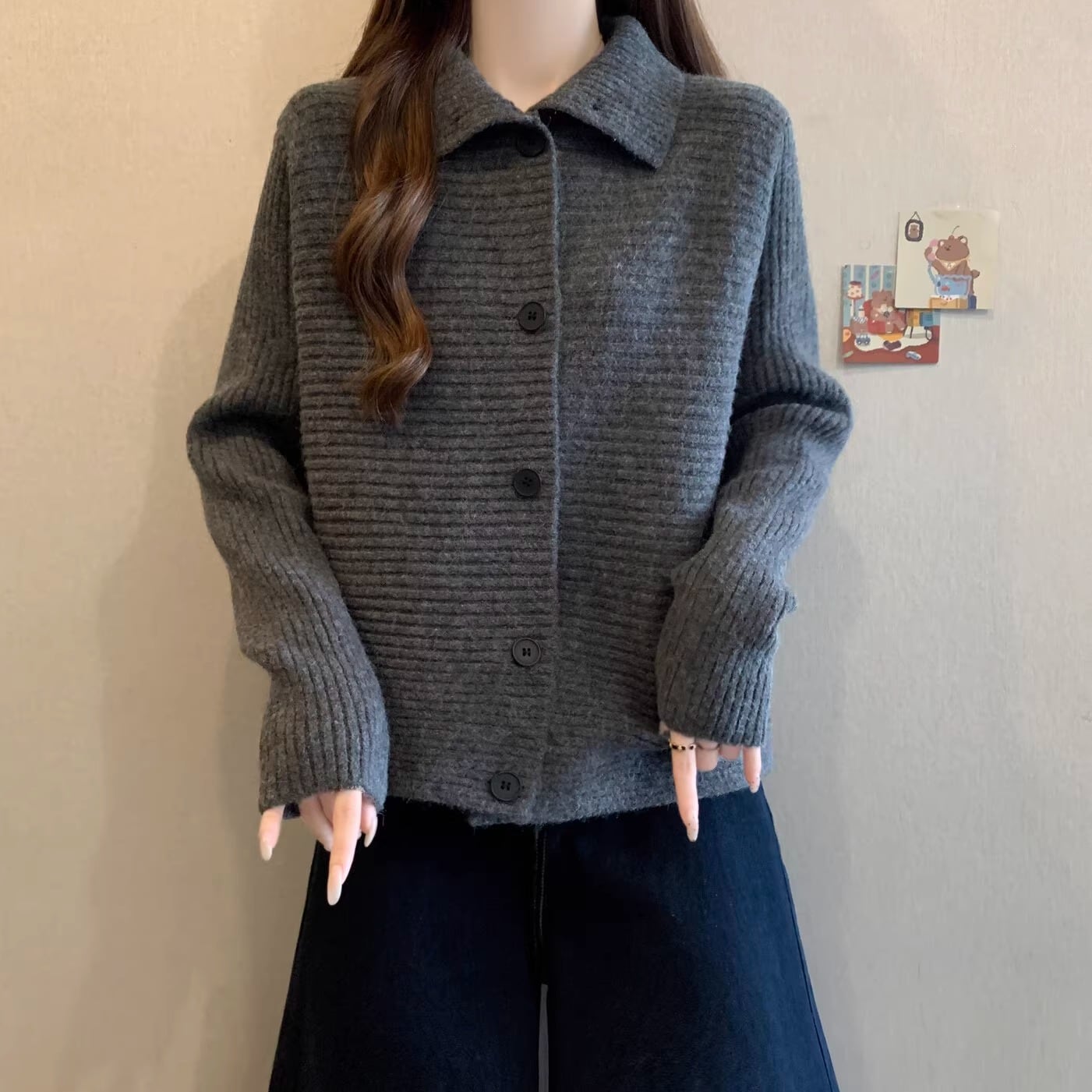 2色/ノルディック柄ポロカラーニットカーデ ・72764