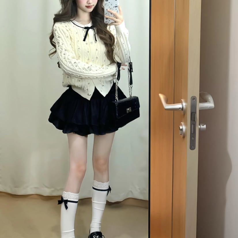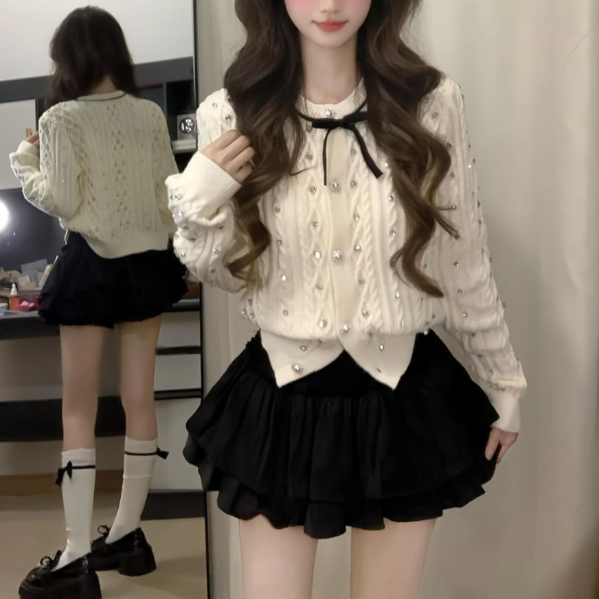 ▽Instagram「新作情報配信中」 フォローお願いいたします。 https://www.instagram.com/sucrier_closet/ ▼カラー オフホワイト+ブラック ▼サイズ [ Sサイズ ] カーデ:着丈50cm バスト90cm 肩幅39cm 袖丈60cm スカート:着丈40cm ウエスト64cm [ Mサイズ ] カーデ:着丈51cm バスト94cm 肩幅40cm 袖丈61cm スカート:着丈41cm ウエスト68cm [ Lサイズ ] カーデ:着丈52cm バスト98cm 肩幅41cm 袖丈62cm スカート:着丈42cm ウエスト72cm [ XLサイズ ] カーデ:着丈53cm バスト102cm 肩幅42cm 袖丈63cm スカート:着丈43cm ウエスト76cm ※1-3cm程度の誤差がある場合がございます。予めご了承ください。 ▼シーズン 秋冬 ▼同じカテゴリの商品はこちら https://www.sucrier.jp/categories/1737171 ▽お支払い方法 ・クレジットカード決済 ・キャリア決済 (docomo/au/Softbank/Y!mobile) ・後払い決済 (商品お届け後コンビニ払いなど) ▽注意点 ※こちらの商品は決済から10日-3週間前後でのお届けとなります。 ※配送日時指定等に関しては、ご指定できないことご了承くださいませ。 ※できる限り早くお届けできるように手配させて頂きます。 ※検品はしておりますが、もし届いた商品に不備がありましたら、誠実に対応させていただきます。 商品ID:SC073516