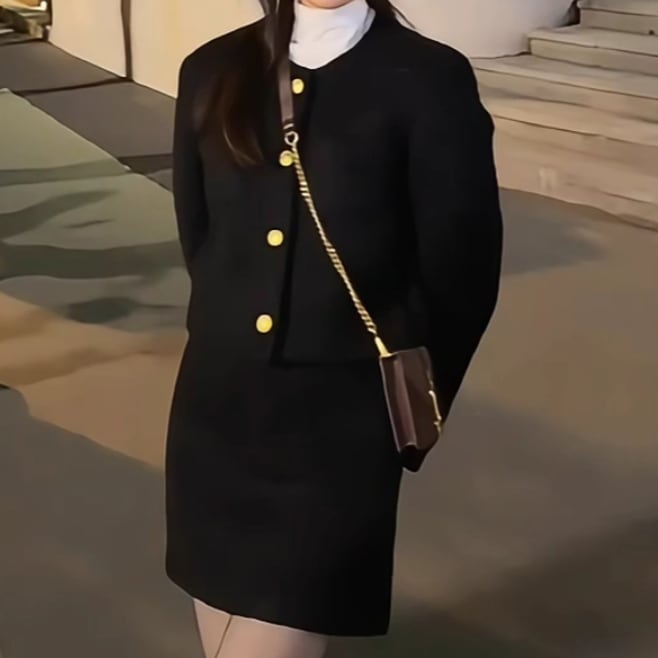 ▽Instagram「新作情報配信中」 フォローお願いいたします。 https://www.instagram.com/sucrier_closet/ ▼カラー ブラック ▼サイズ [ Sサイズ ] ジャケット:着丈44cm バスト96cm 肩幅40cm 袖丈58cm スカート:着丈36cm ウエスト64cm ヒップ90cm [ Mサイズ ] ジャケット:着丈45cm バスト100cm 肩幅41cm 袖丈59cm スカート:着丈37cm ウエスト68cm ヒップ94cm [ Lサイズ ] ジャケット:着丈46cm バスト104cm 肩幅42cm 袖丈60cm スカート:着丈38cm ウエスト72cm ヒップ98cm [ XLサイズ ] ジャケット:着丈47cm バスト108cm 肩幅43cm 袖丈61cm スカート:着丈39cm ウエスト76cm ヒップ102cm ※1-3cm程度の誤差がある場合がございます。予めご了承ください。 ▼シーズン 秋冬 ▼同じカテゴリの商品はこちら https://www.sucrier.jp/categories/1737171 ▽お支払い方法 ・クレジットカード決済 ・キャリア決済 (docomo/au/Softbank/Y!mobile) ・後払い決済 (商品お届け後コンビニ払いなど) ▽注意点 ※こちらの商品は決済から10日-3週間前後でのお届けとなります。 ※配送日時指定等に関しては、ご指定できないことご了承くださいませ。 ※できる限り早くお届けできるように手配させて頂きます。 ※検品はしておりますが、もし届いた商品に不備がありましたら、誠実に対応させていただきます。 商品ID:SC073507