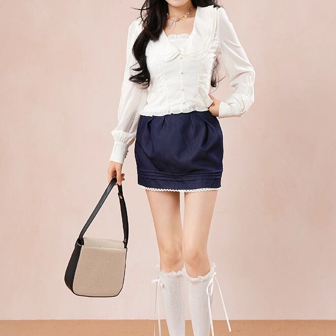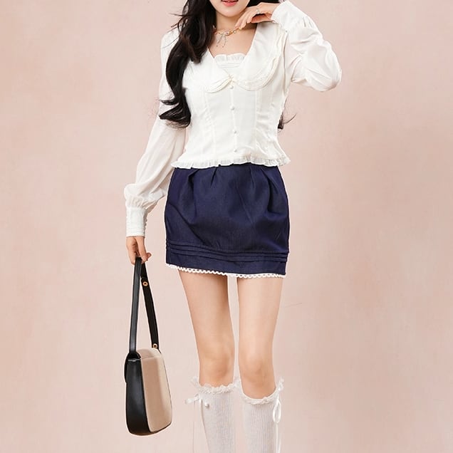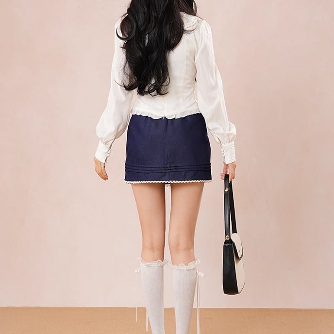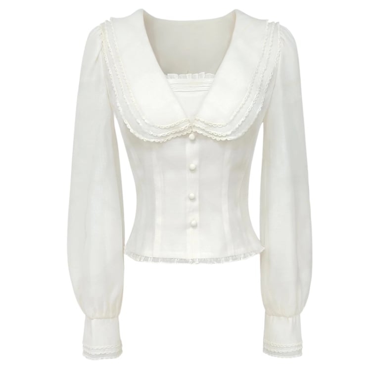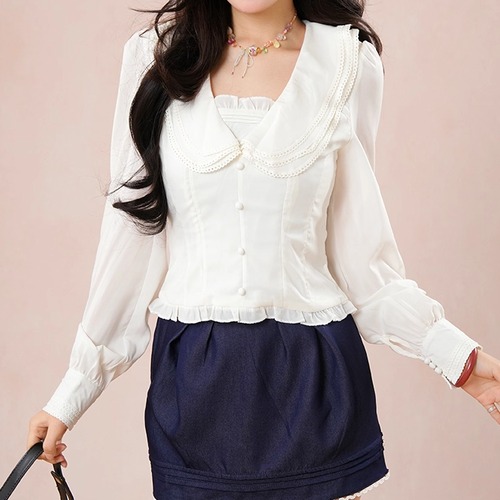 ボリュームスリーブレースラウンドカラーブラウス ・67546