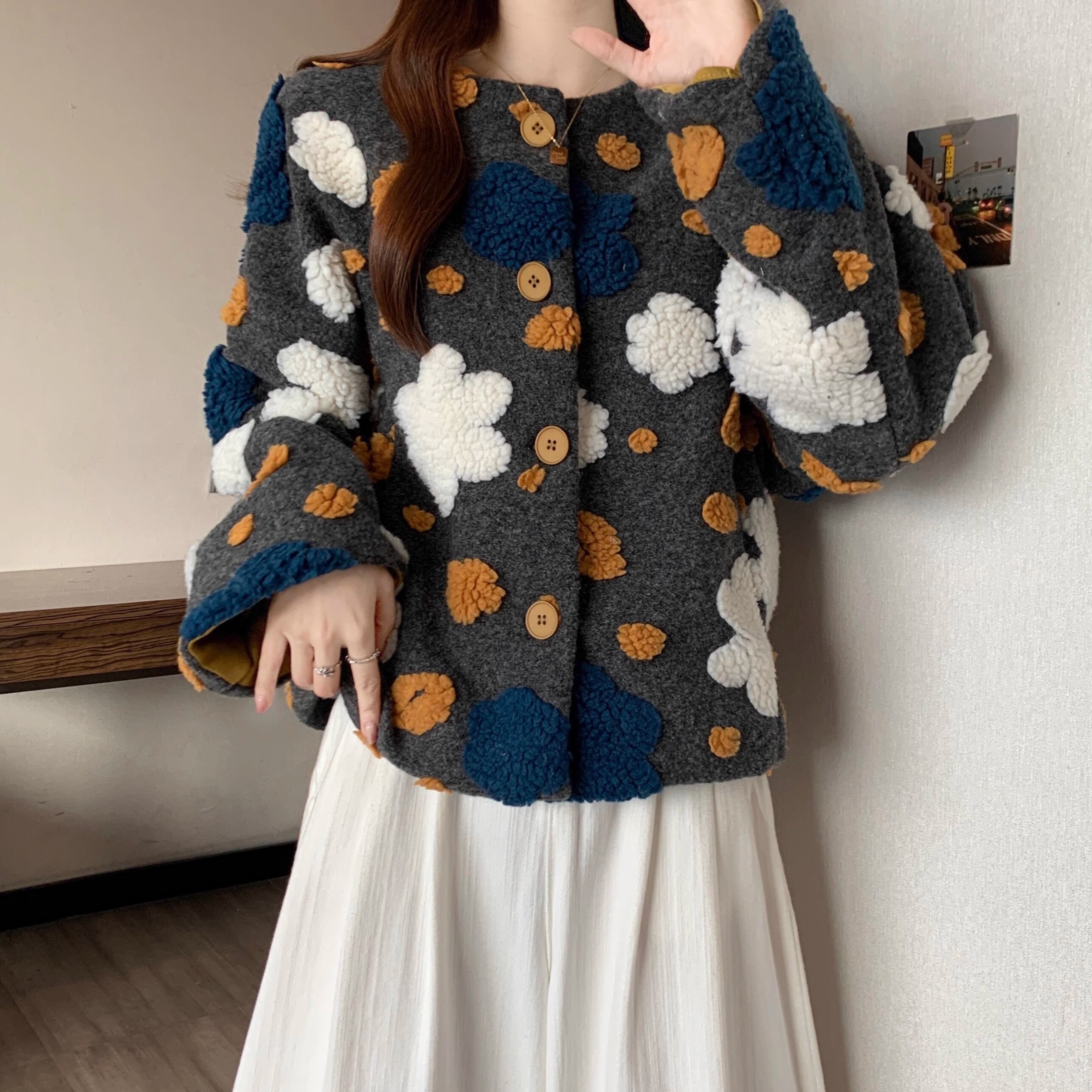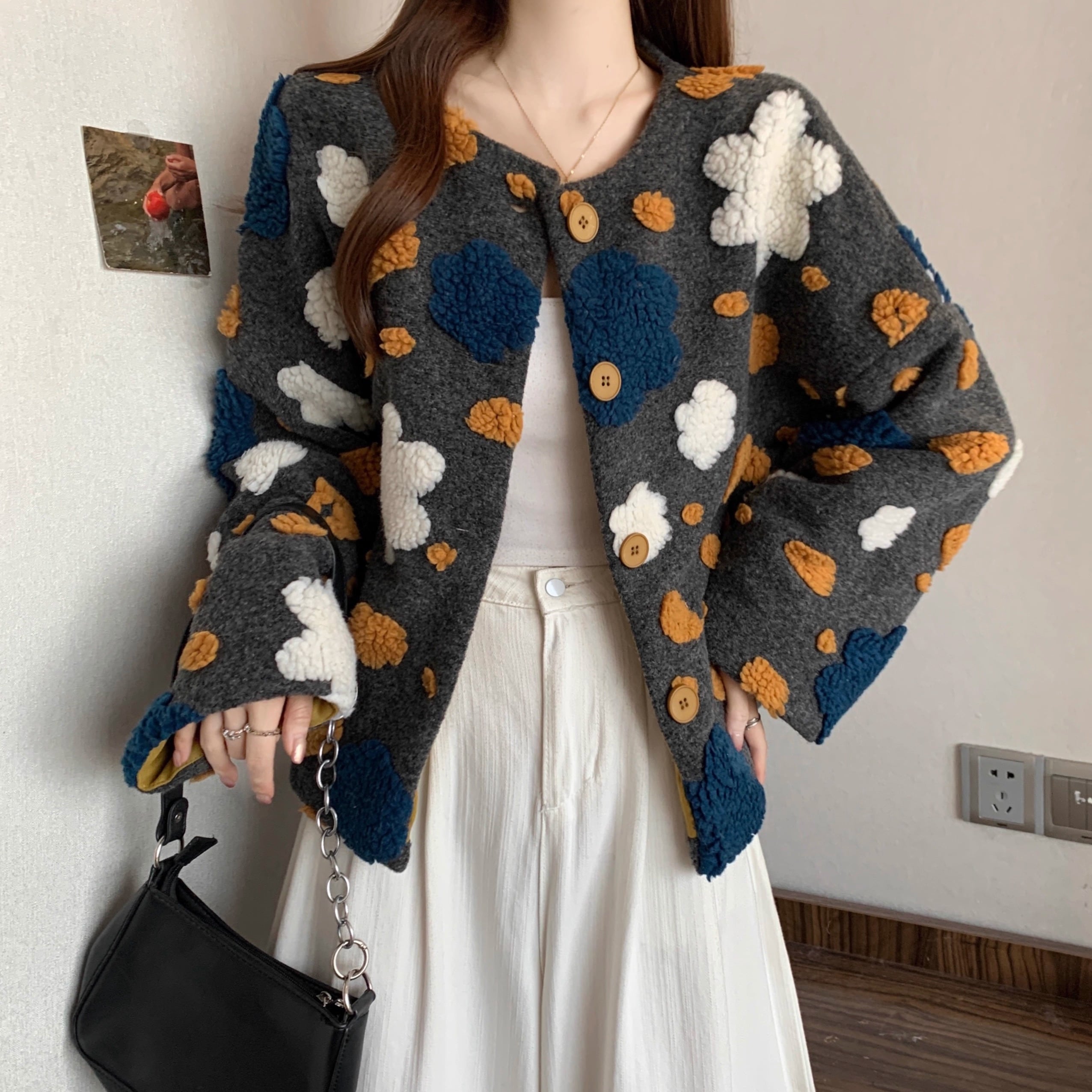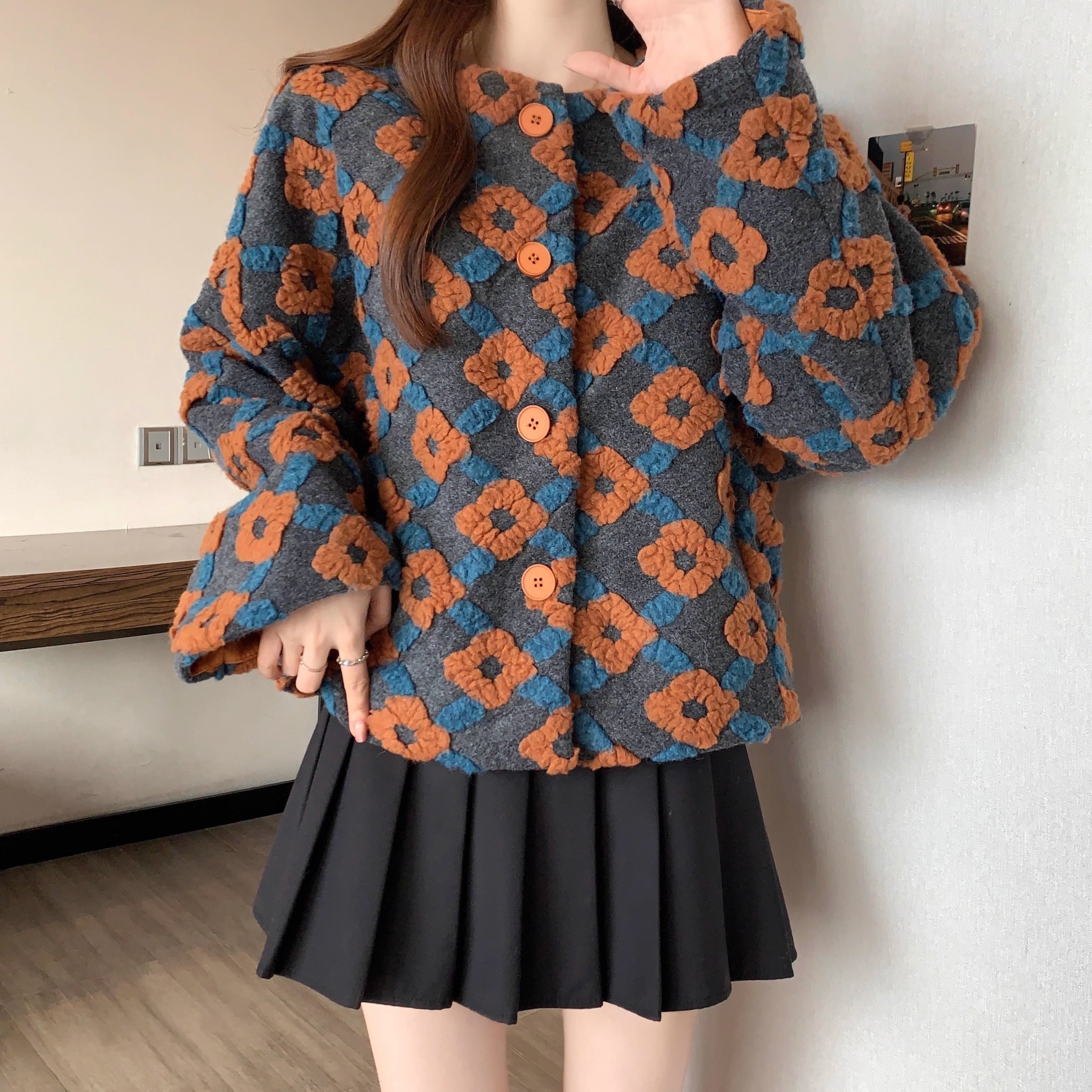 2色/ノルディック柄ポロカラーニットカーデ ・72764