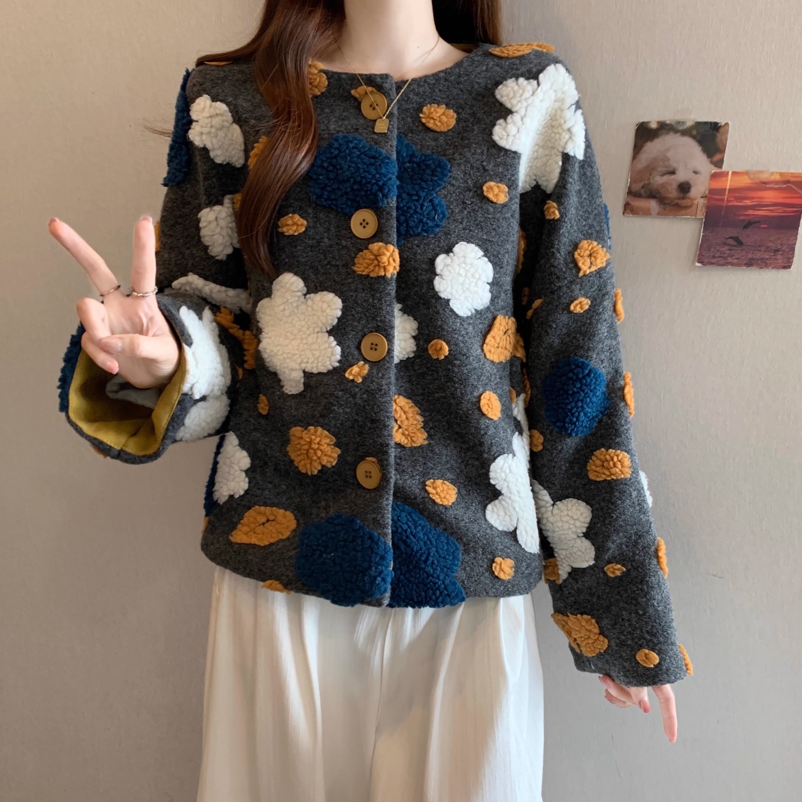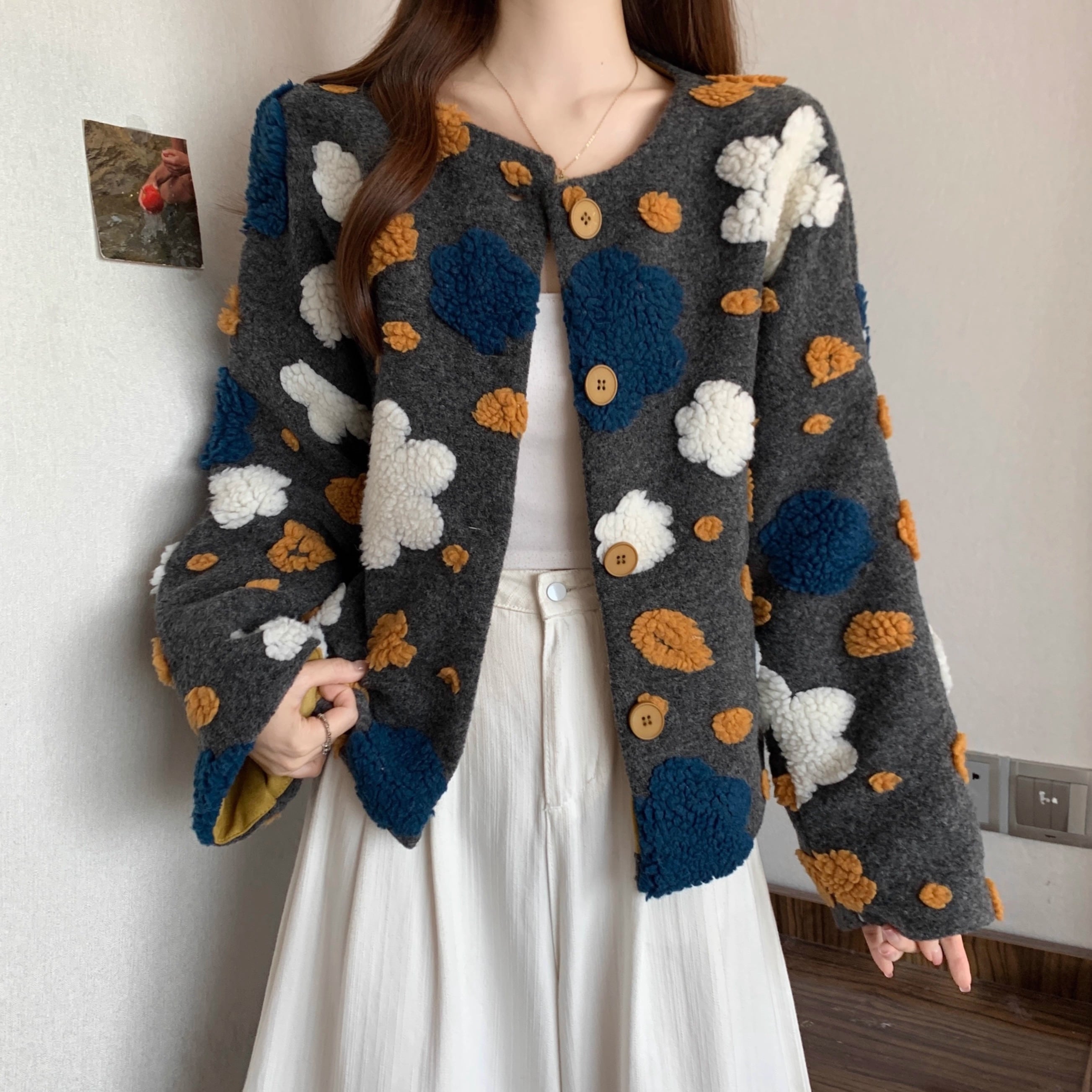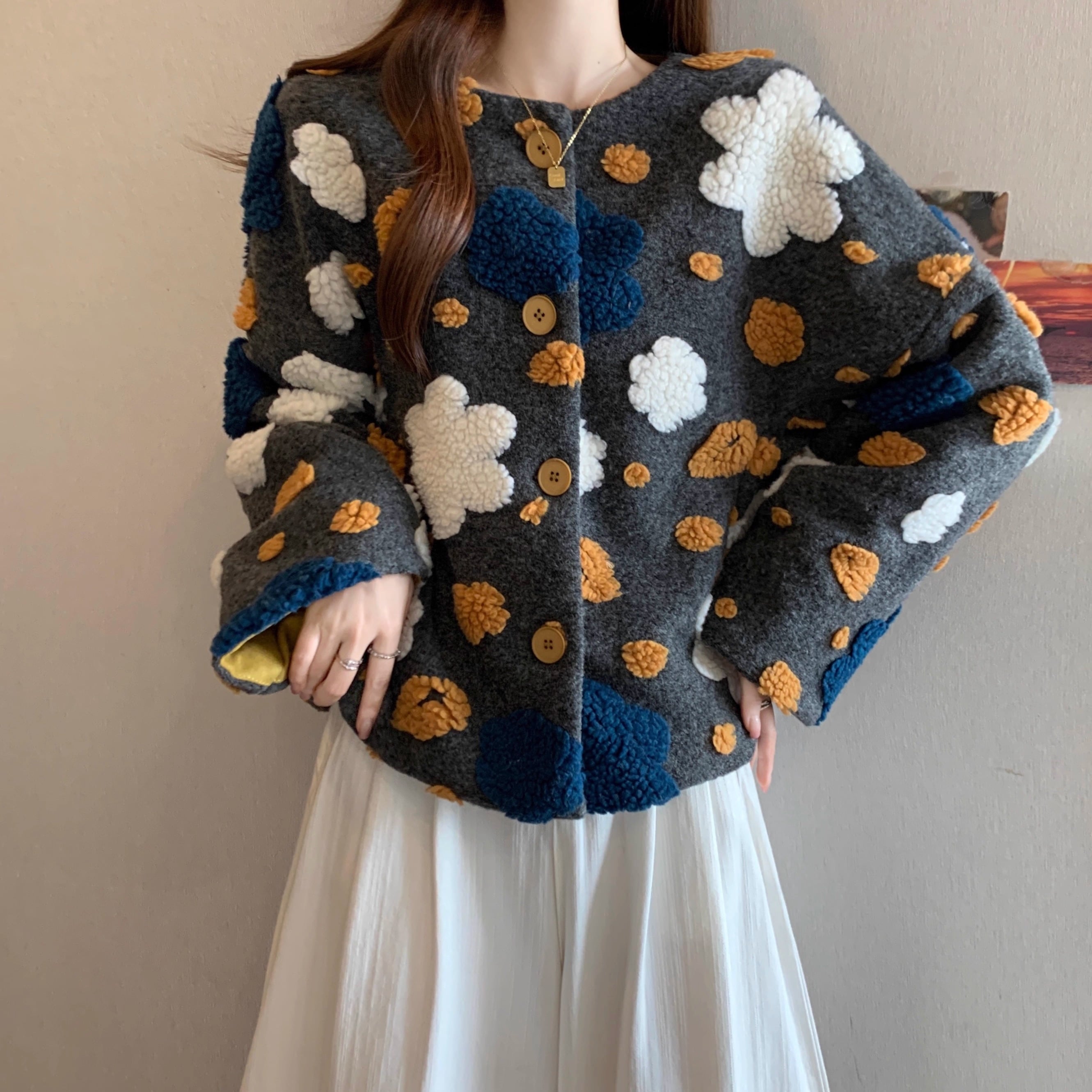 2色/ノルディック柄ポロカラーニットカーデ ・72764