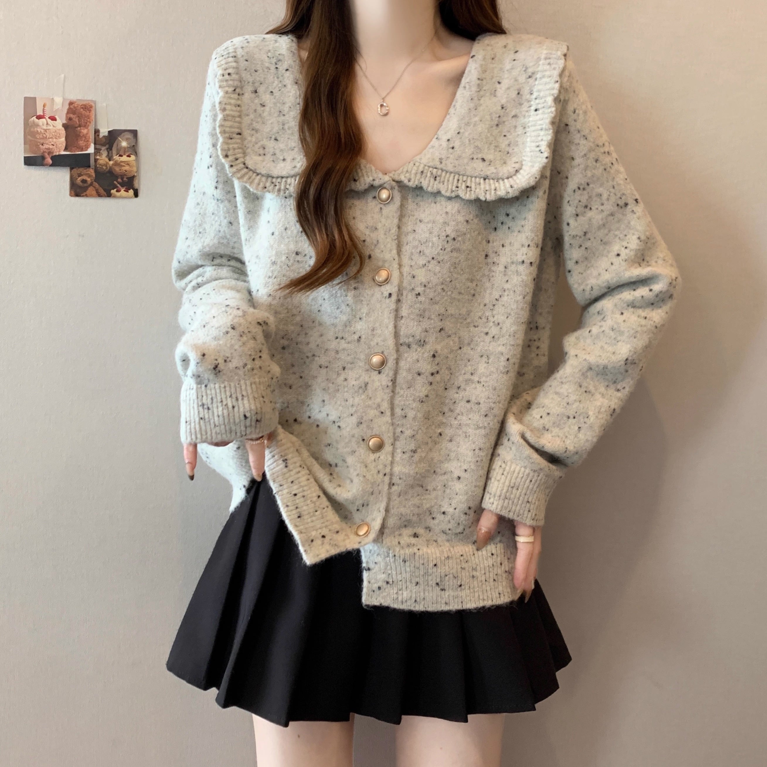 2色/ノルディック柄ポロカラーニットカーデ ・72764