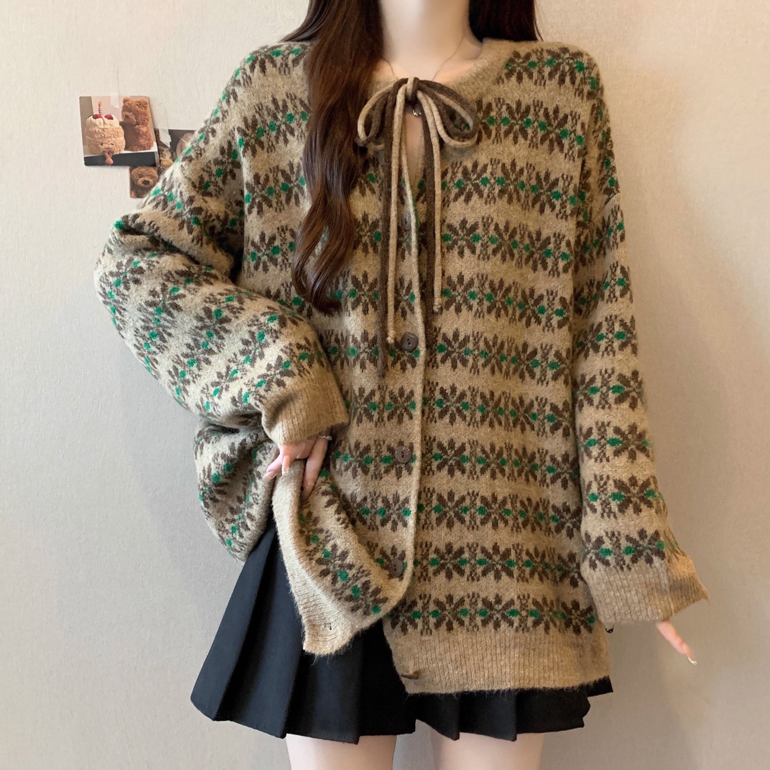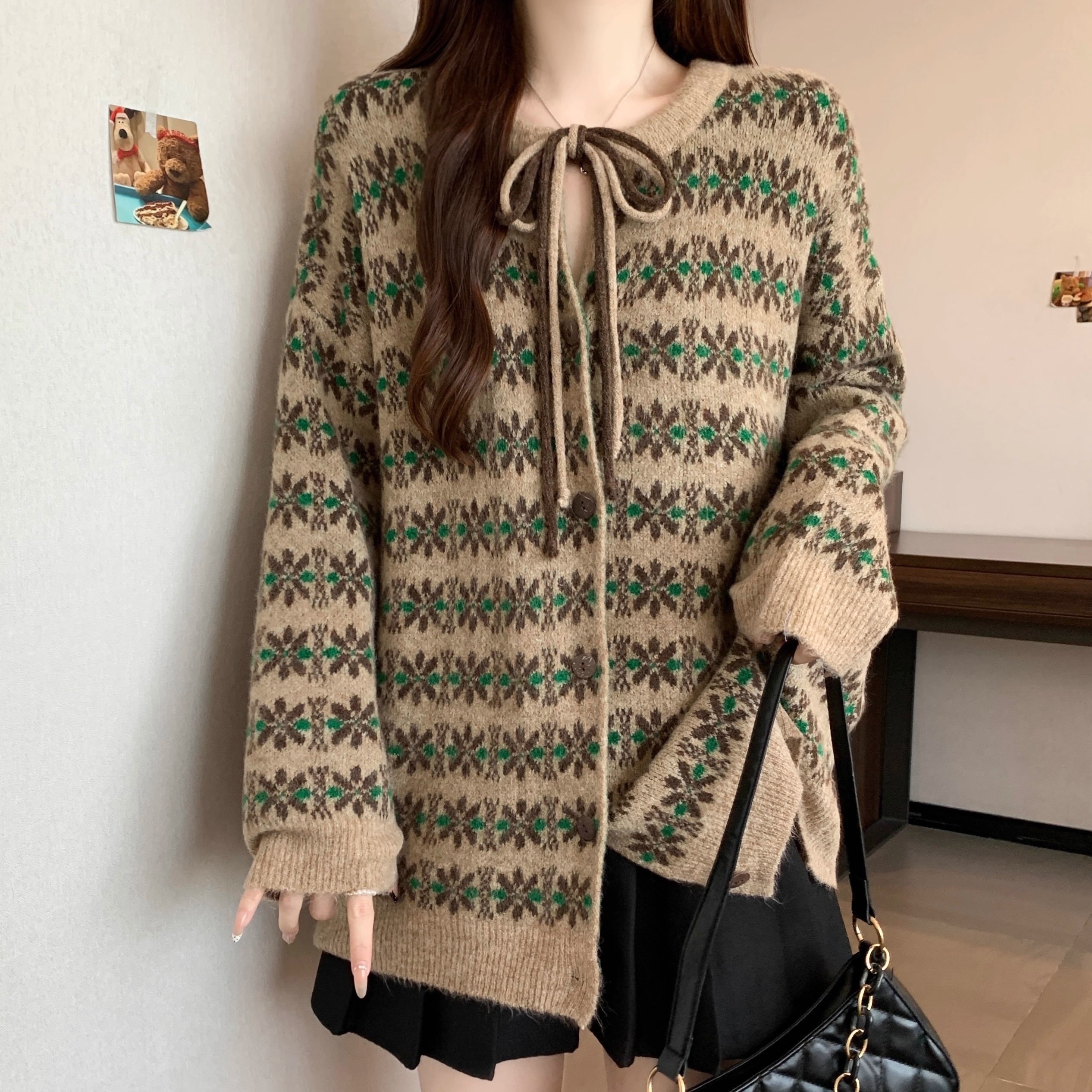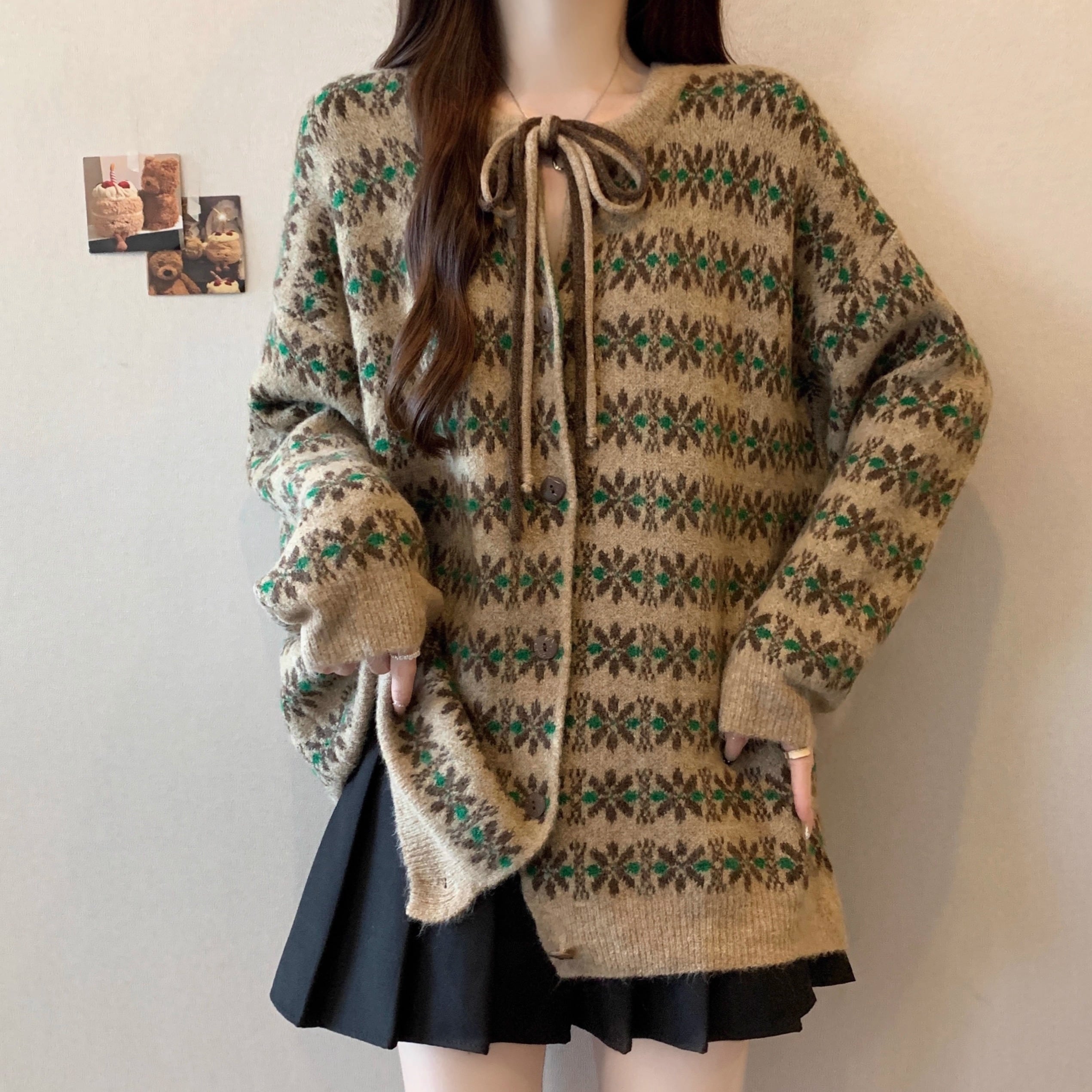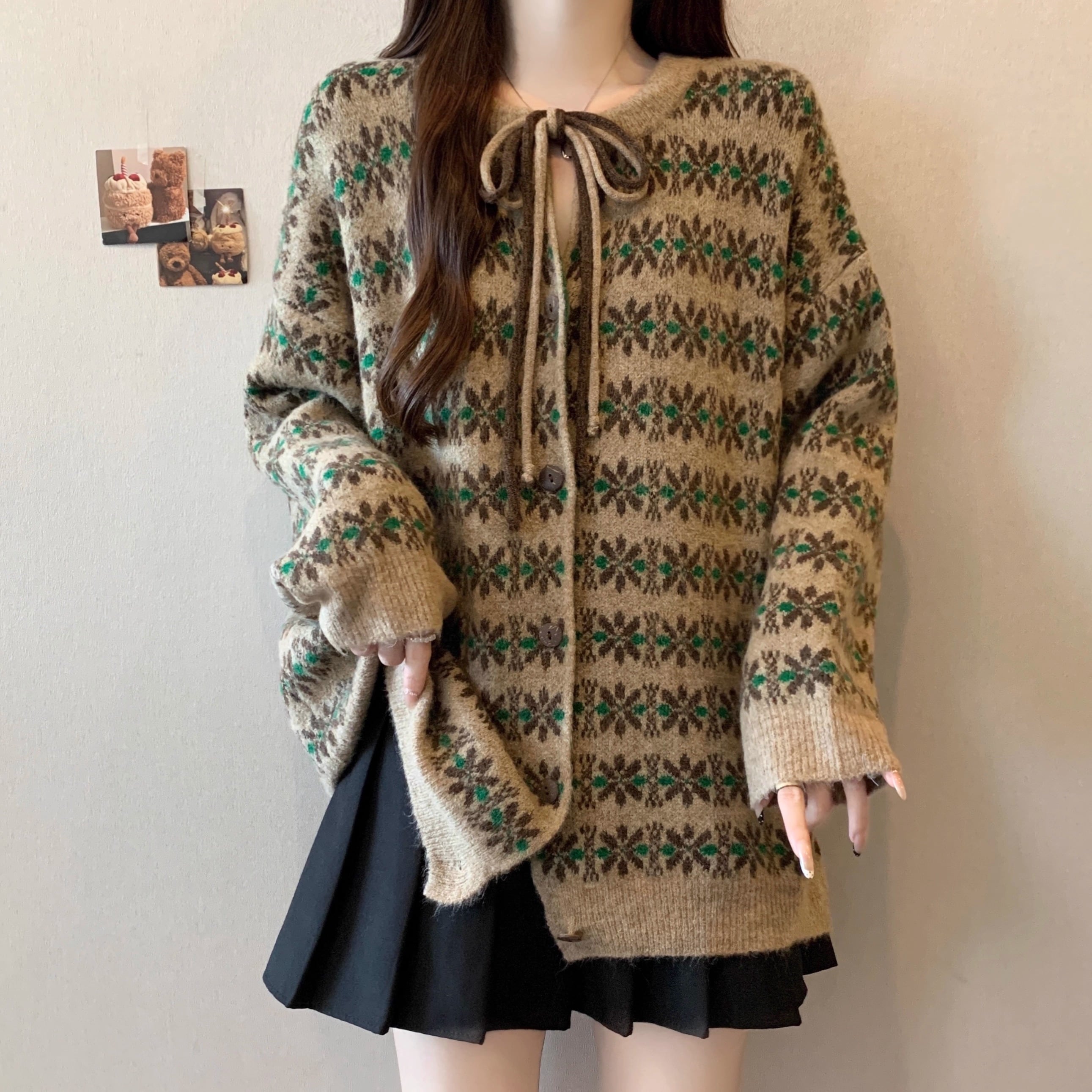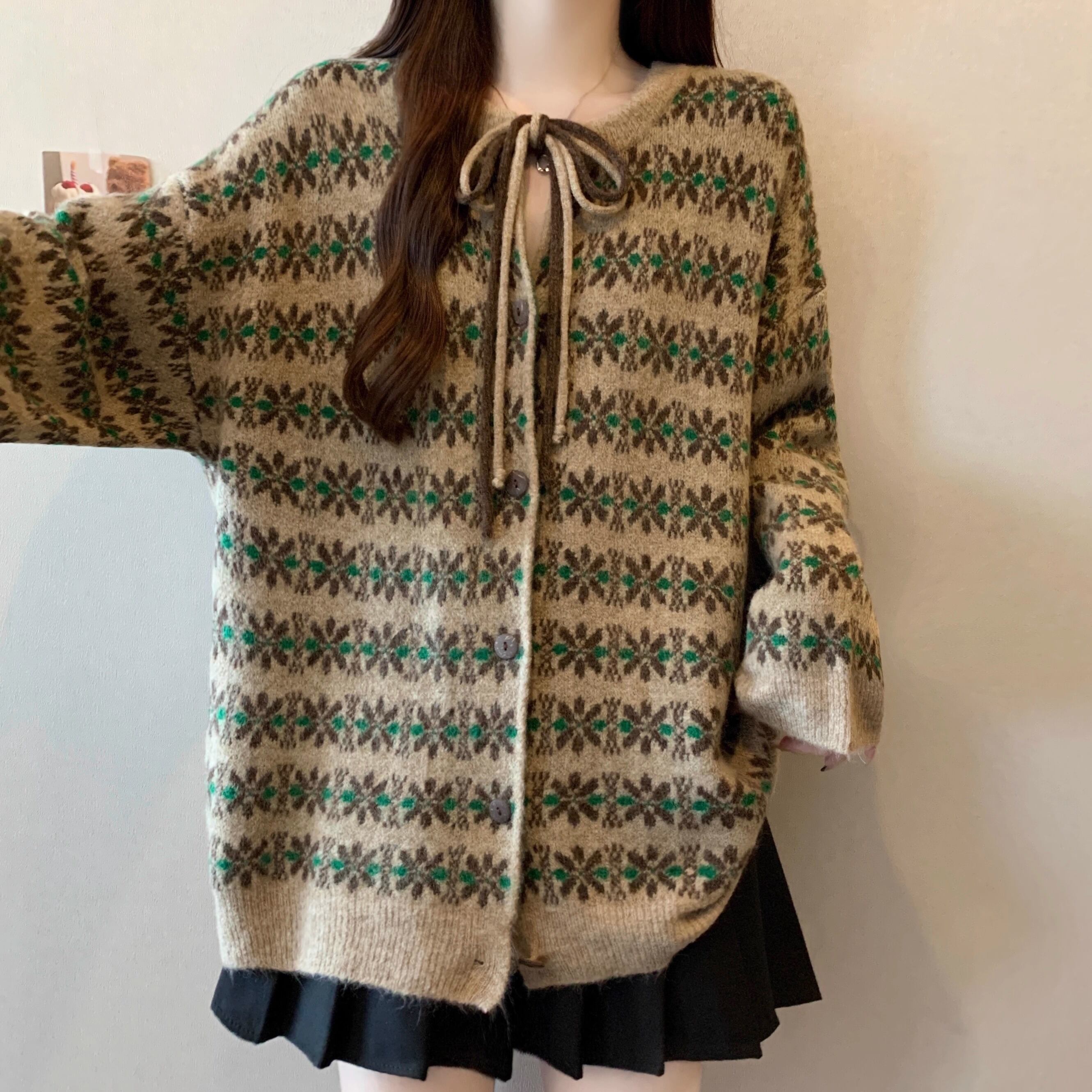 2色/ノルディック柄ポロカラーニットカーデ ・72764
