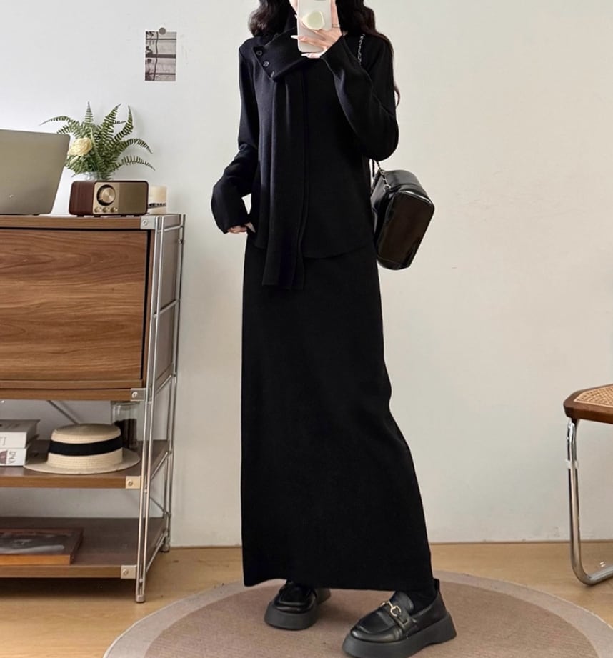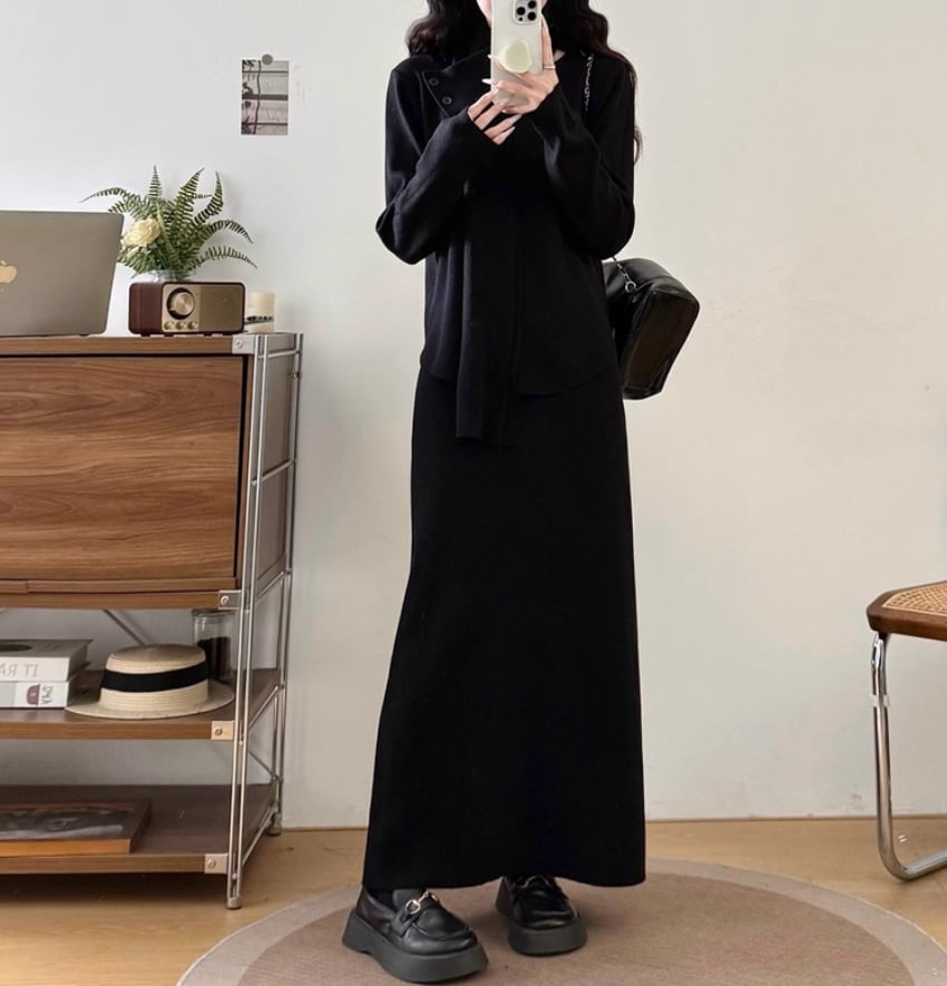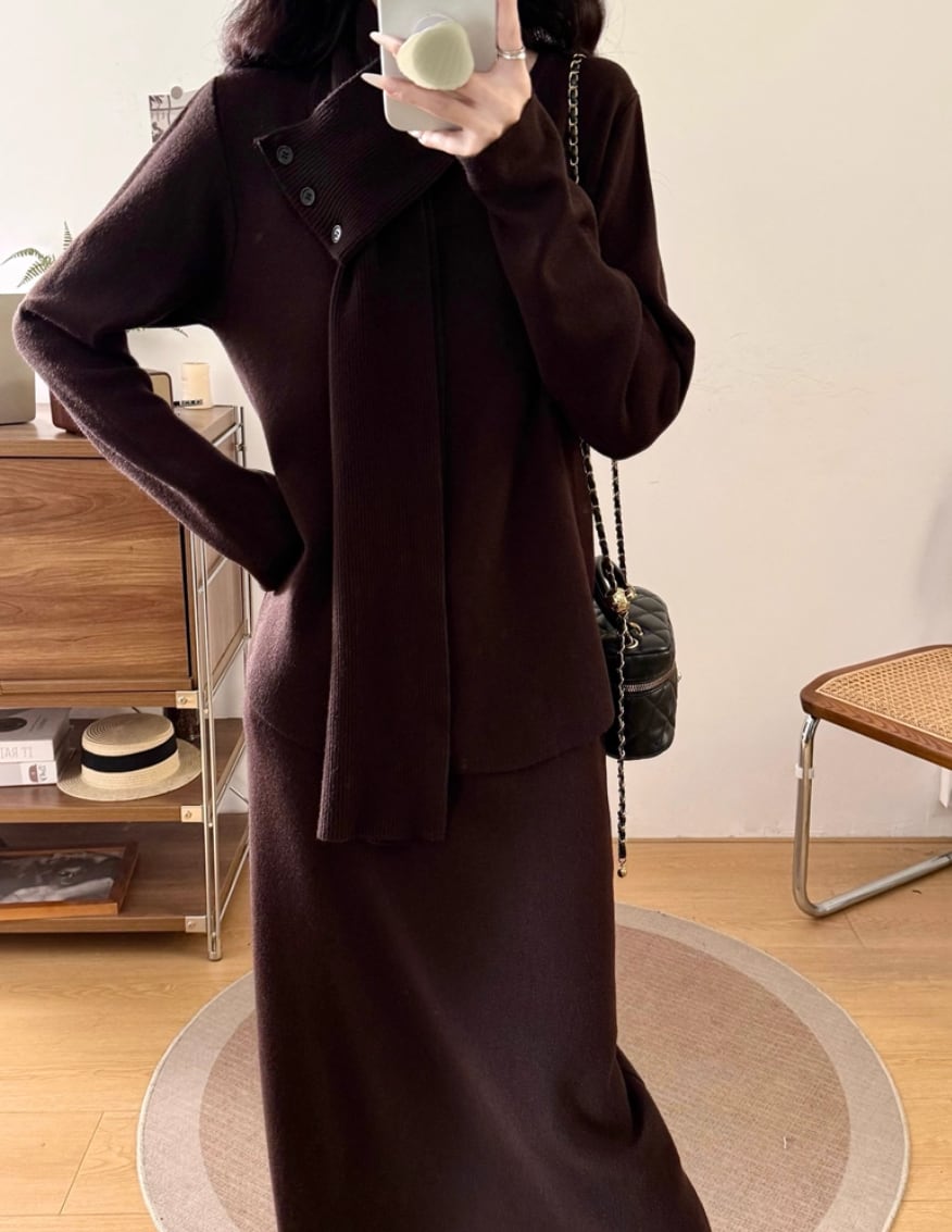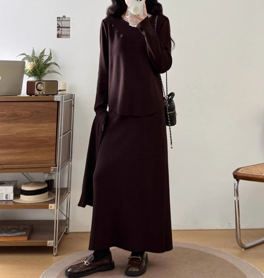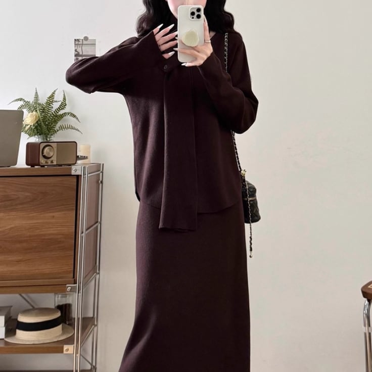 ▽Instagram「新作情報配信中」 フォローお願いいたします。 https://www.instagram.com/sucrier_closet/ ▼カラー ブラウン(画像2枚目) ブラック(画像3枚目) ▼サイズ [ Mサイズ ] トップス:着丈58cm バスト95cm 肩幅38cm 袖丈59cm スカート:着丈85cm ウエスト55-73cm [ Lサイズ ] トップス:着丈59cm バスト99cm 肩幅39cm 袖丈60cm スカート:着丈86cm ウエスト60-78cm [ XLサイズ ] トップス:着丈60cm バスト103cm 肩幅40cm 袖丈61cm スカート:着丈87cm ウエスト65-83cm [ 2XLサイズ ] トップス:着丈61cm バスト107cm 肩幅41cm 袖丈62cm スカート:着丈88cm ウエスト70-88cm [ 3XLサイズ ] トップス:着丈62cm バスト111cm 肩幅42cm 袖丈63cm スカート:着丈89cm ウエスト75-93cm [ 4XLサイズ ] トップス:着丈63cm バスト115cm 肩幅43cm 袖丈64cm スカート:着丈90cm ウエスト80-98cm ※1-3cm程度の誤差がある場合がございます。予めご了承ください。 ▼シーズン 秋冬 ▼同じカテゴリの商品はこちら https://www.sucrier.jp/categories/1737171 ▽お支払い方法 ・クレジットカード決済 ・キャリア決済 (docomo/au/Softbank/Y!mobile) ・後払い決済 (商品お届け後コンビニ払いなど) ▽注意点 ※こちらの商品は決済から10日-3週間前後でのお届けとなります。 ※配送日時指定等に関しては、ご指定できないことご了承くださいませ。 ※できる限り早くお届けできるように手配させて頂きます。 ※検品はしておりますが、もし届いた商品に不備がありましたら、誠実に対応させていただきます。 商品ID:SC073428