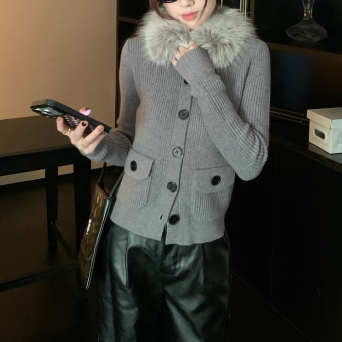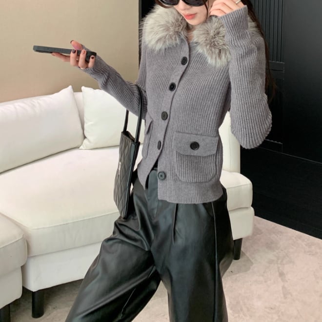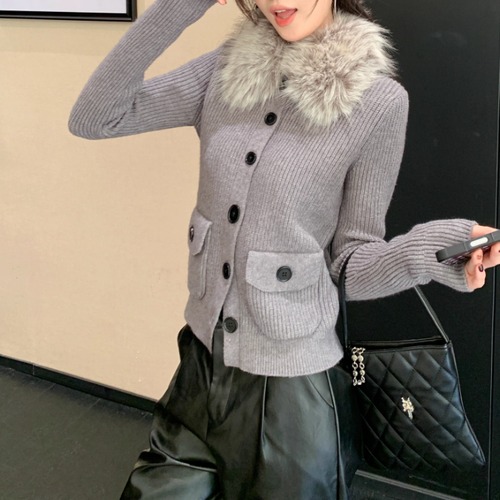 2色/2wayポロカラー横リブニットカーディガン ・73532