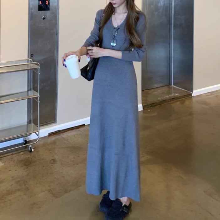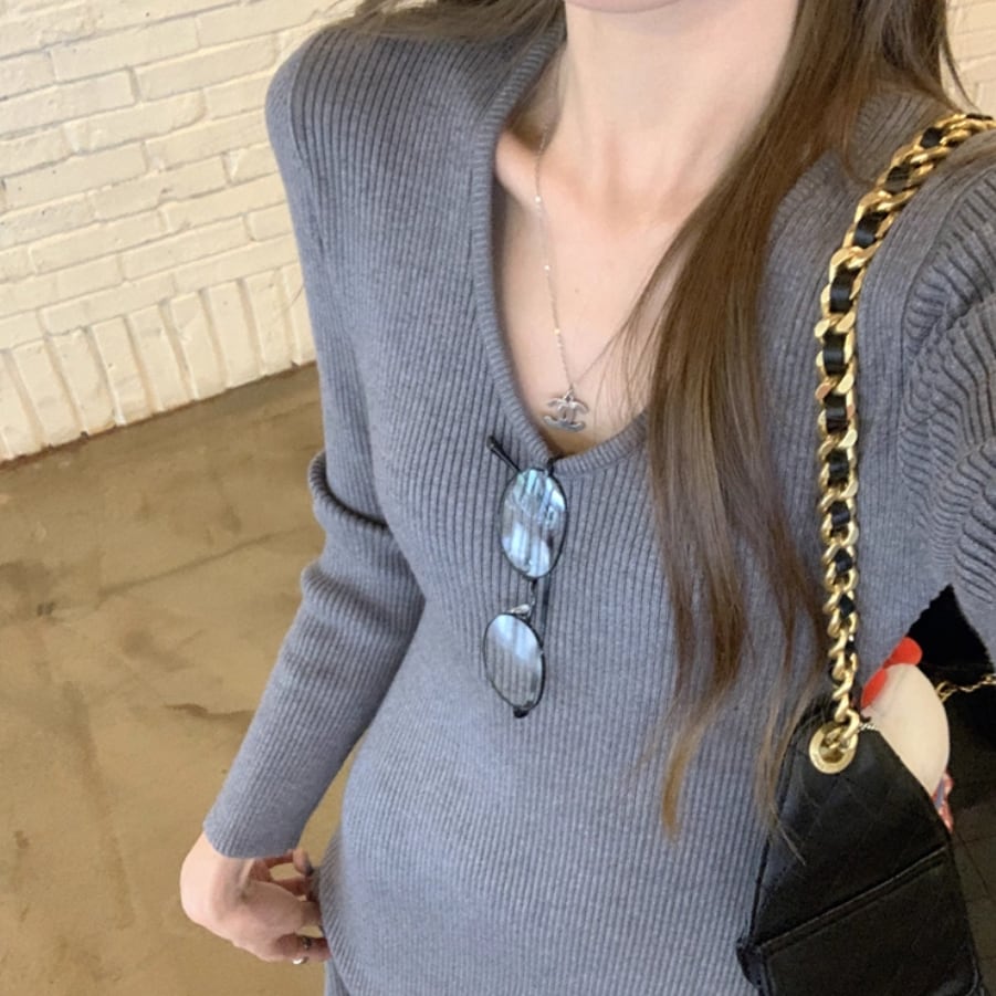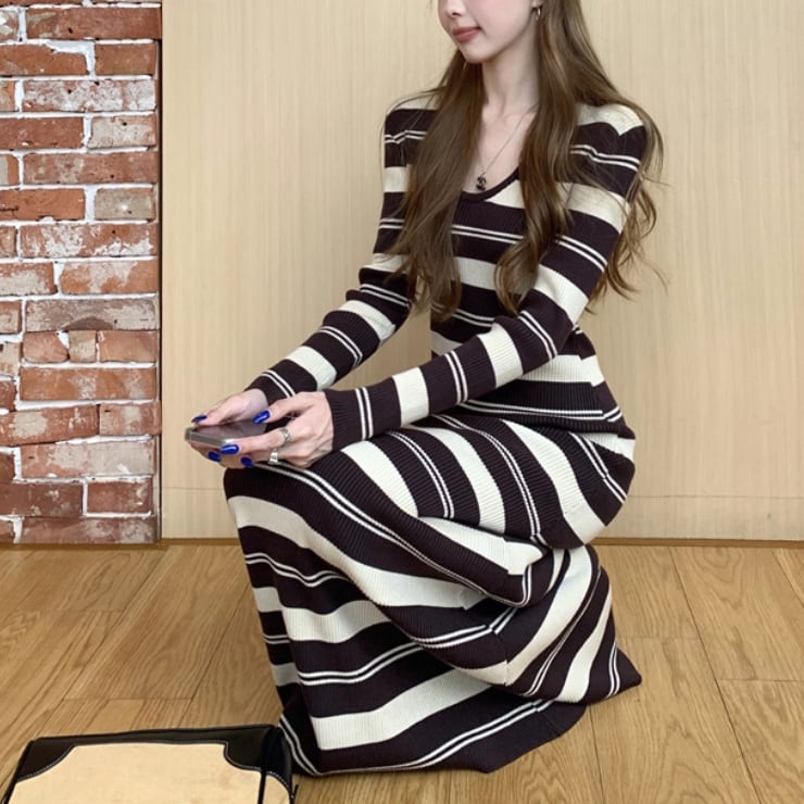 ポロカラーアーガイルニットワンピース ・72278