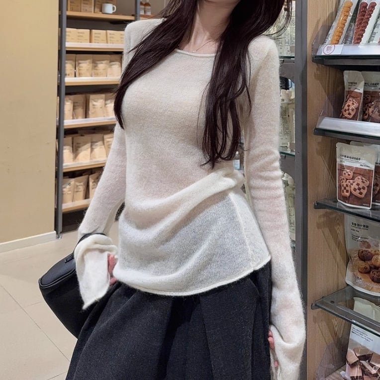 3色/カットアウトデザインリブニットチュニック ・73536