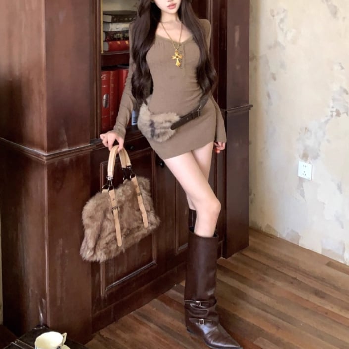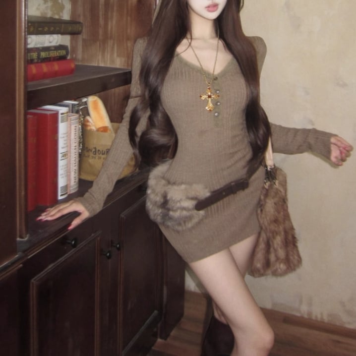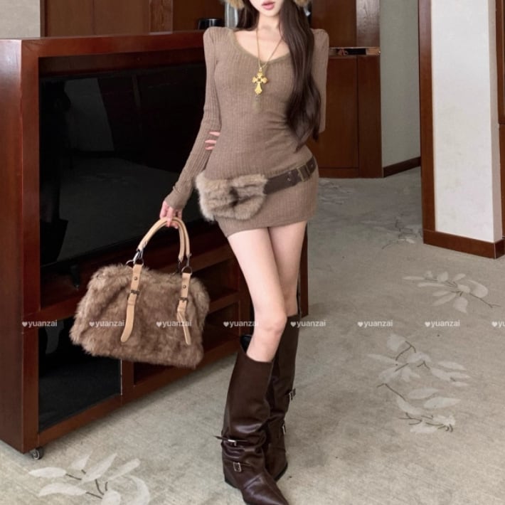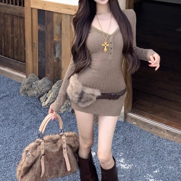 ポロカラーアーガイルニットワンピース ・72278