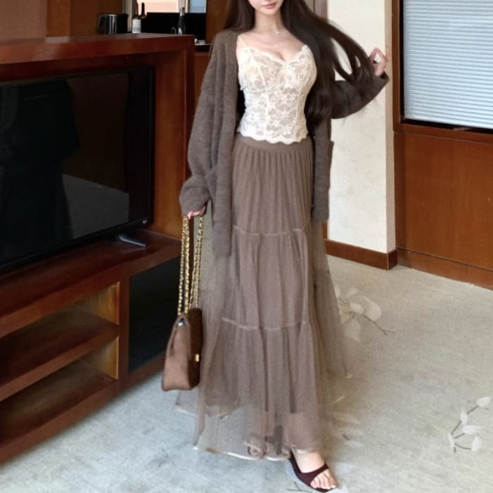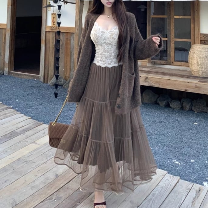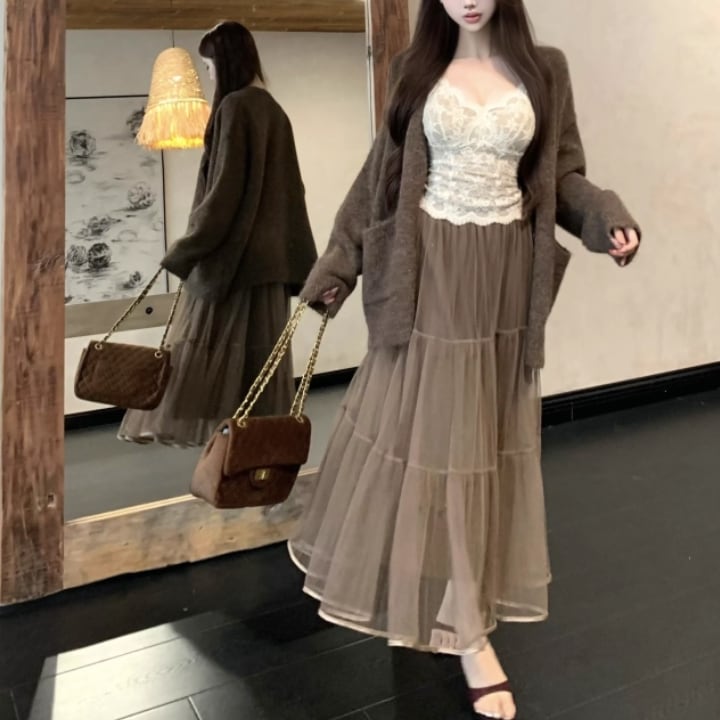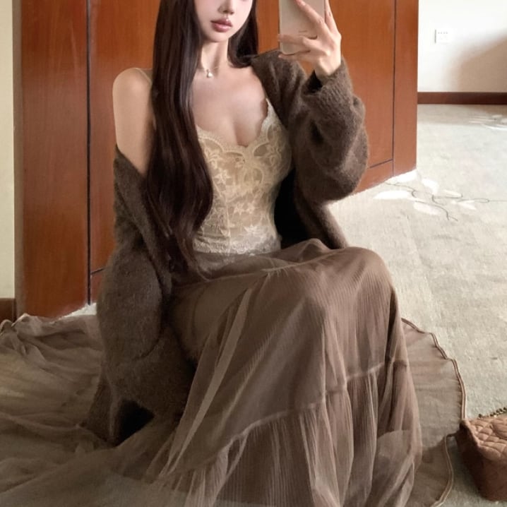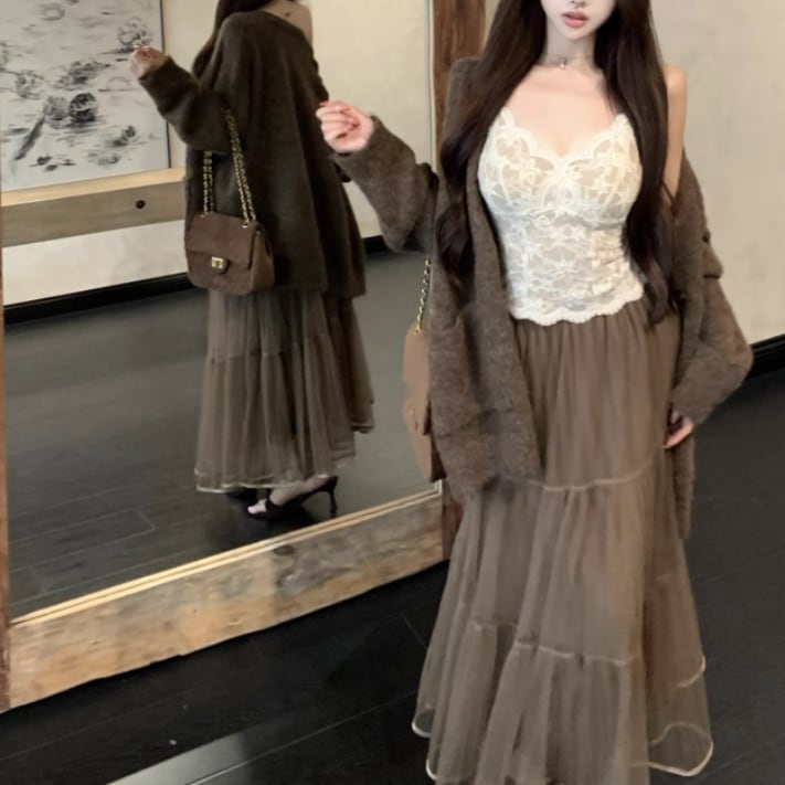 ▽Instagram「新作情報配信中」 フォローお願いいたします。 https://www.instagram.com/sucrier_closet/ ▼サイズ [ Mサイズ ] カーデ:着丈73cm バスト126cm 袖丈51cm キャミ:着丈42cm バスト74cm スカート:着丈85cm ウエスト62-76cm [ Lサイズ ] カーデ:着丈74cm バスト130cm 袖丈52cm キャミ:着丈43cm バスト78cm スカート:着丈86cm ウエスト66-80cm ※1-3cm程度の誤差がある場合がございます。予めご了承ください。 ▼シーズン 秋,冬 ▼同じカテゴリの商品はこちら https://www.sucrier.jp/categories/1737171 ▽お支払い方法 ・クレジットカード決済 ・キャリア決済 (docomo/au/Softbank/Y!mobile) ・後払い決済 (商品お届け後コンビニ払いなど) ▽注意点 ※こちらの商品は決済から10日-3週間前後でのお届けとなります。 ※配送日時指定等に関しては、ご指定できないことご了承くださいませ。 ※できる限り早くお届けできるように手配させて頂きます。 ※検品はしておりますが、もし届いた商品に不備がありましたら、誠実に対応させていただきます。 商品ID:SC073265