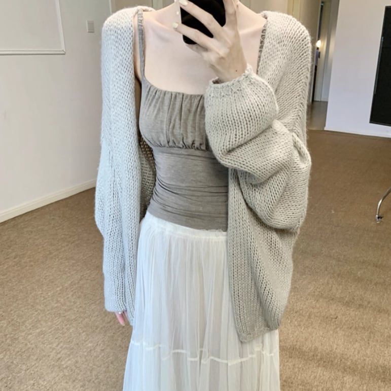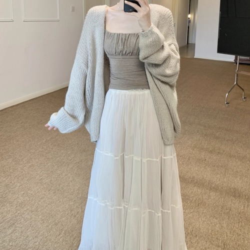 ▽Instagram「新作情報配信中」 フォローお願いいたします。 https://www.instagram.com/sucrier_closet/ ▼サイズ [ Sサイズ ] カーデ:着丈55cm バスト148cm キャミ:着丈90cm ウエスト60cm スカート:着丈24cm ウエスト66cm [ Mサイズ ] カーデ:着丈56cm バスト152cm キャミ:着丈91cm ウエスト64cm スカート:着丈25cm ウエスト70cm [ Lサイズ ] カーデ:着丈57cm バスト156cm キャミ:着丈92cm ウエスト68cm スカート:着丈26cm ウエスト74cm ※1-3cm程度の誤差がある場合がございます。予めご了承ください。 ▼シーズン 秋,冬 ▼同じカテゴリの商品はこちら https://www.sucrier.jp/categories/1737171 ▽お支払い方法 ・クレジットカード決済 ・キャリア決済 (docomo/au/Softbank/Y!mobile) ・後払い決済 (商品お届け後コンビニ払いなど) ▽注意点 ※こちらの商品は決済から10日-3週間前後でのお届けとなります。 ※配送日時指定等に関しては、ご指定できないことご了承くださいませ。 ※できる限り早くお届けできるように手配させて頂きます。 ※検品はしておりますが、もし届いた商品に不備がありましたら、誠実に対応させていただきます。 商品ID:SC073246