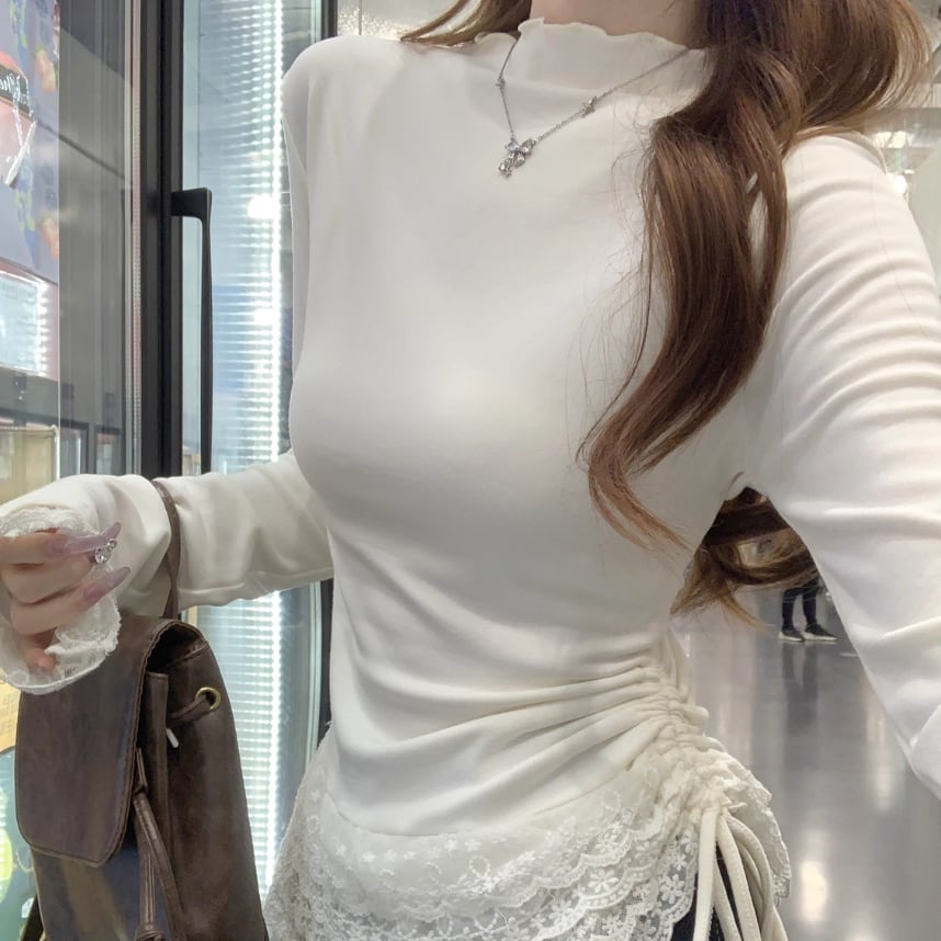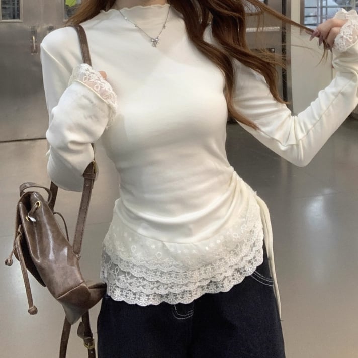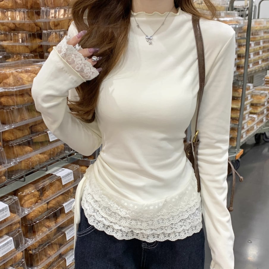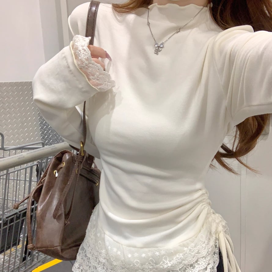 レースカラーアシメボタンドッキングトップス ・71106