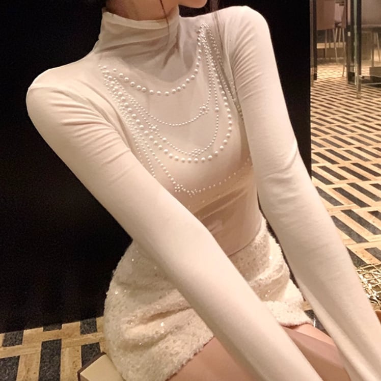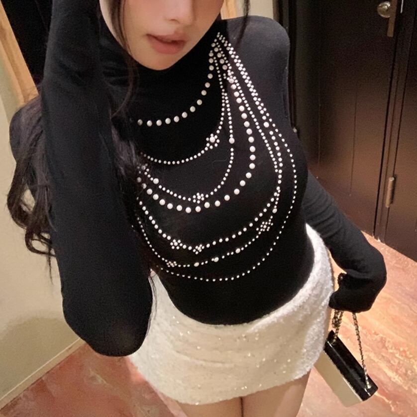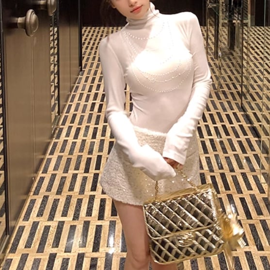 【2点セット】2色/ハイネックトップス+サイドベルトチェックジャンスカ ・72066
