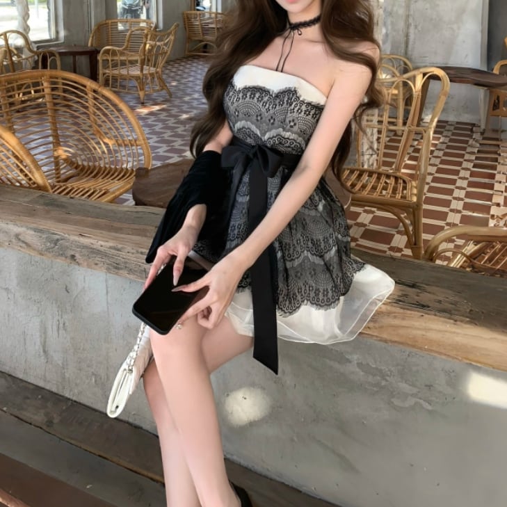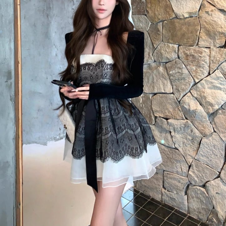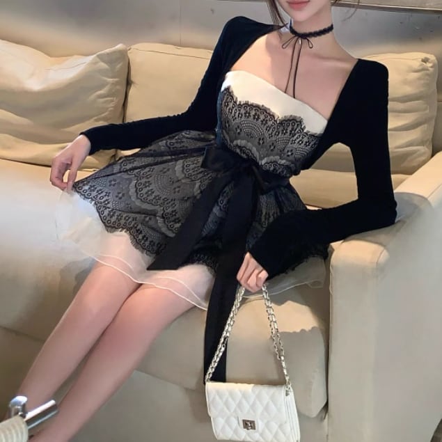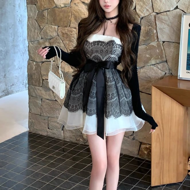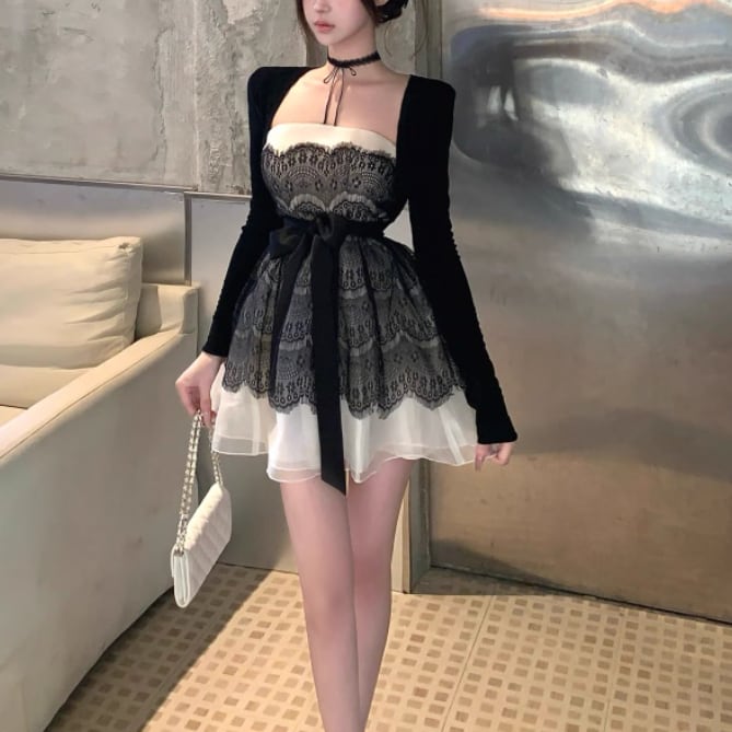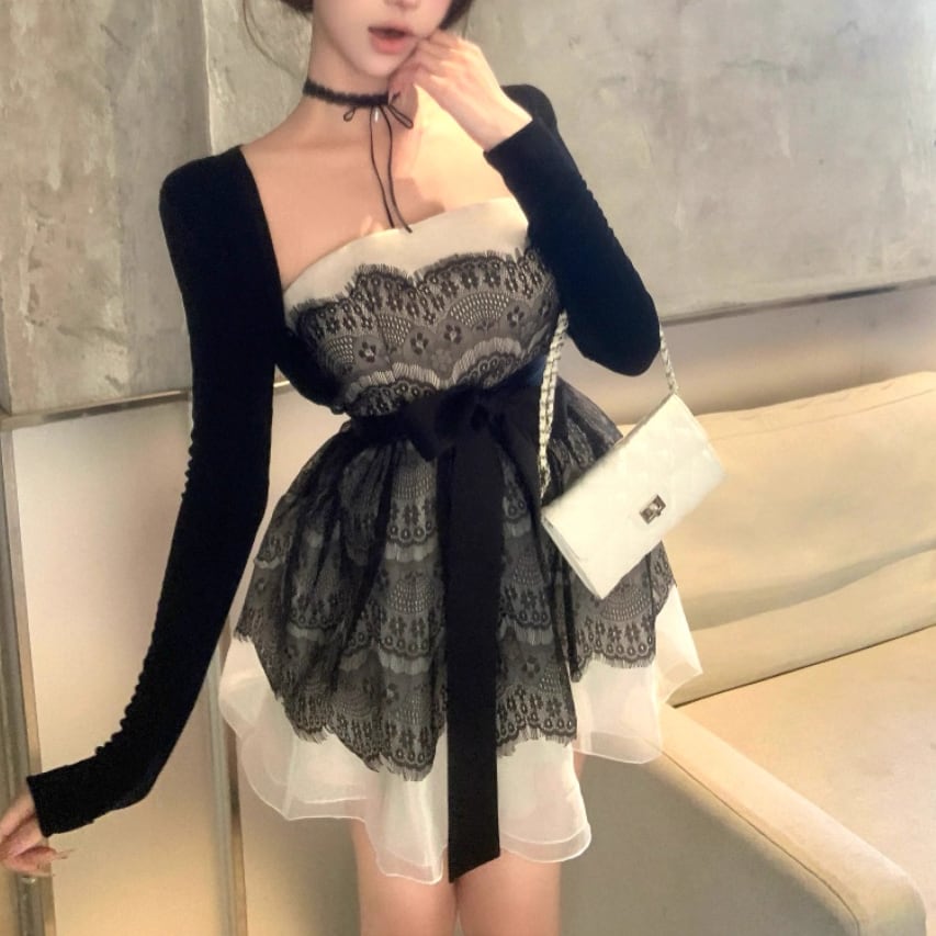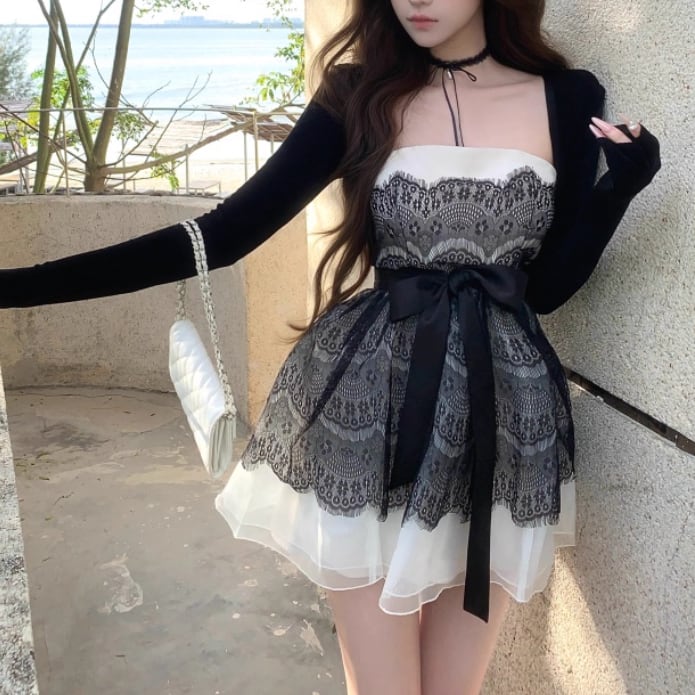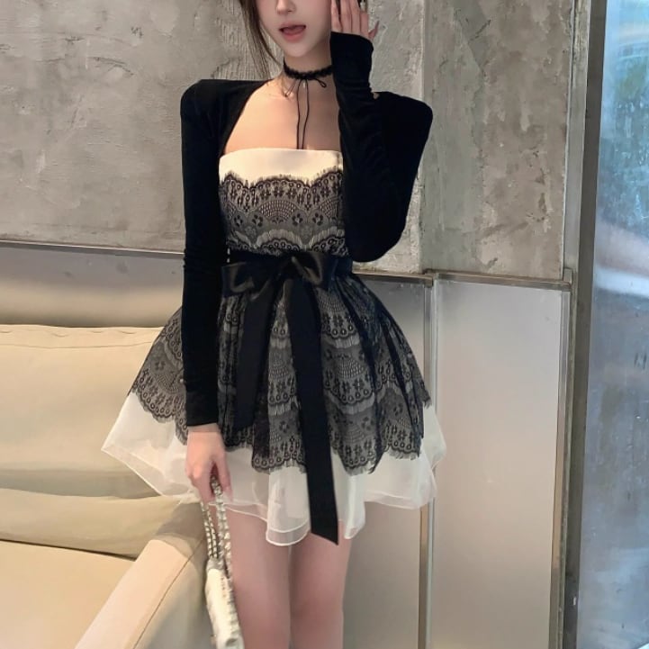 【2点セット】ショートジャケット+ファートリムティアードリボンキャミワンピ ・63097