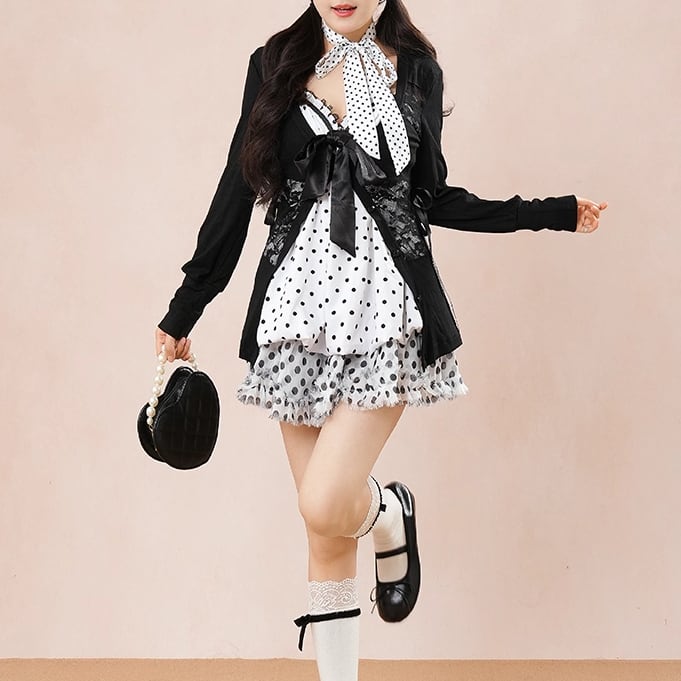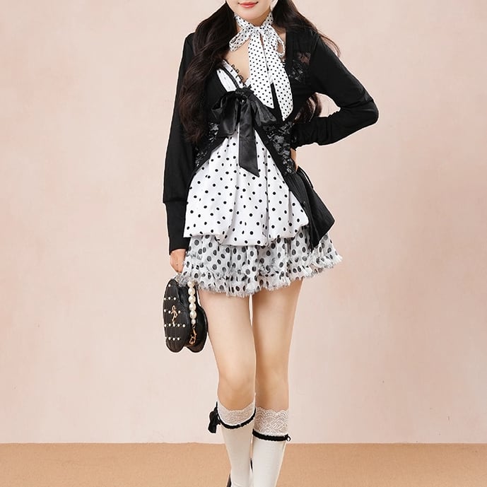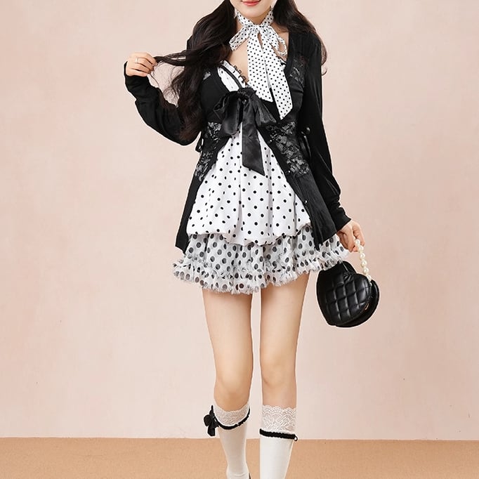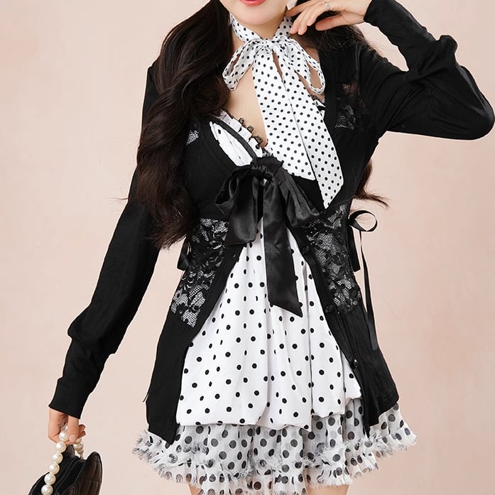 【2点セット】ショートジャケット+ファートリムティアードリボンキャミワンピ ・63097