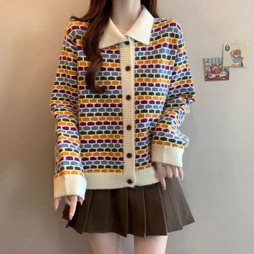 2色/ノルディック柄ポロカラーニットカーデ ・72764